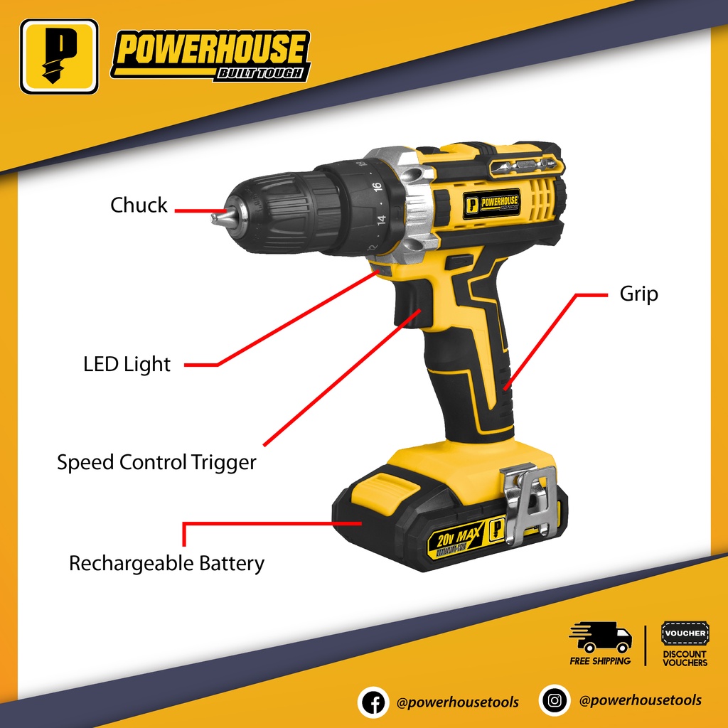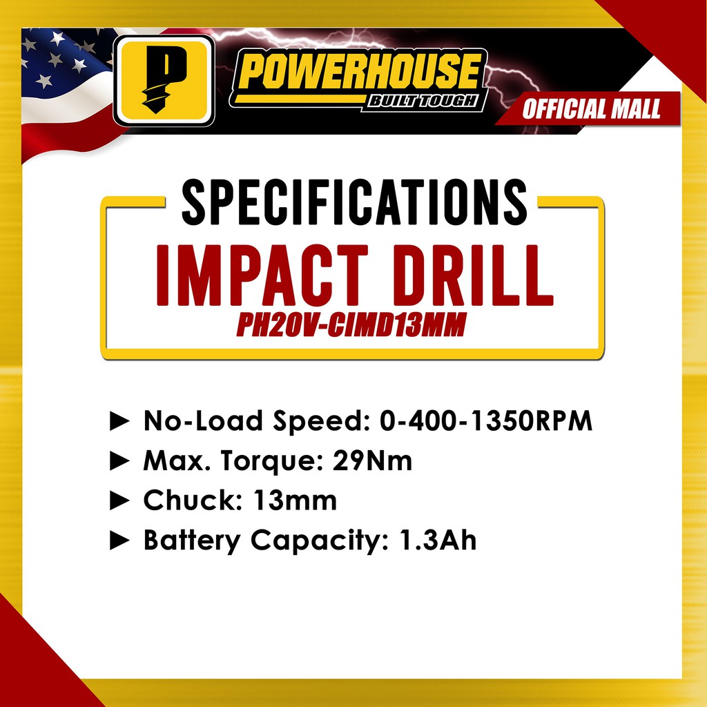 Powerhouse Cordless Impact Drill 20V 13mm PH-20V-CIMD13MM PHPT