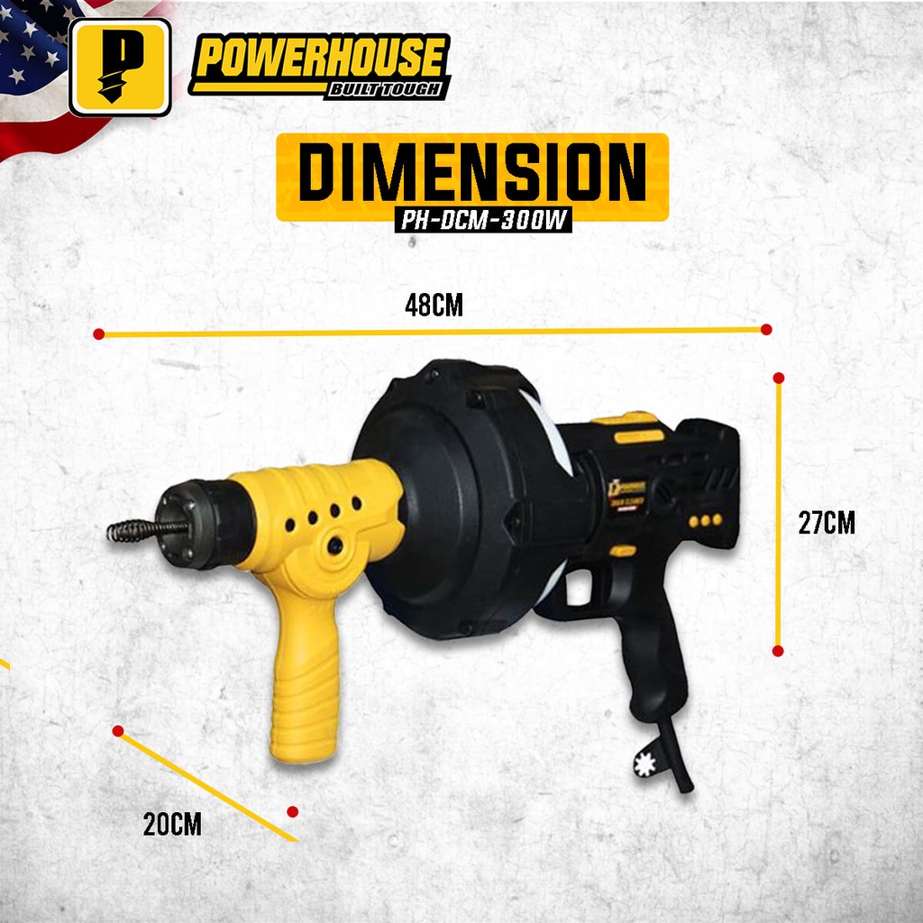 Powerhouse Drain Cleaner 300W w/ 23ft Auger Tube Length PH-DCM-300W PHPT
