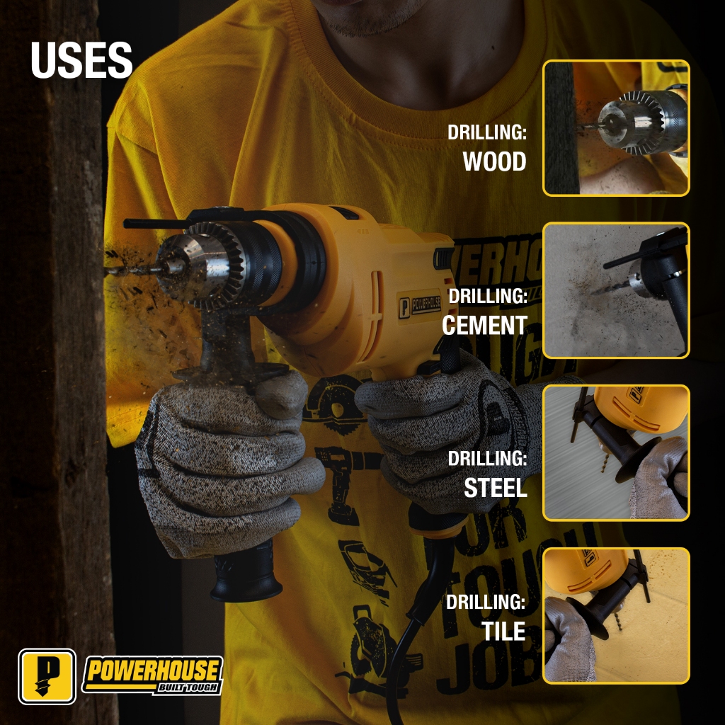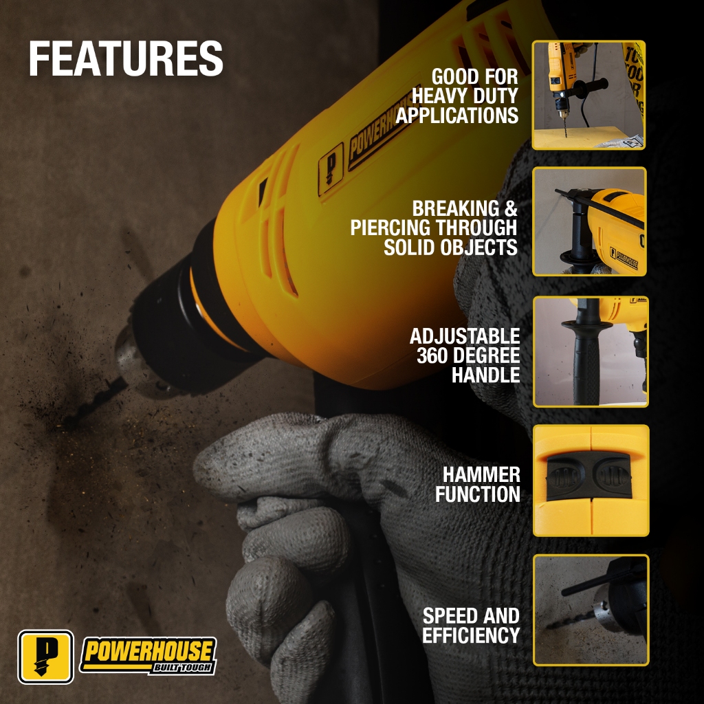 Powerhouse Hammer Impact Drill Driver Set 900W 12mm with Carrying Case PHPT