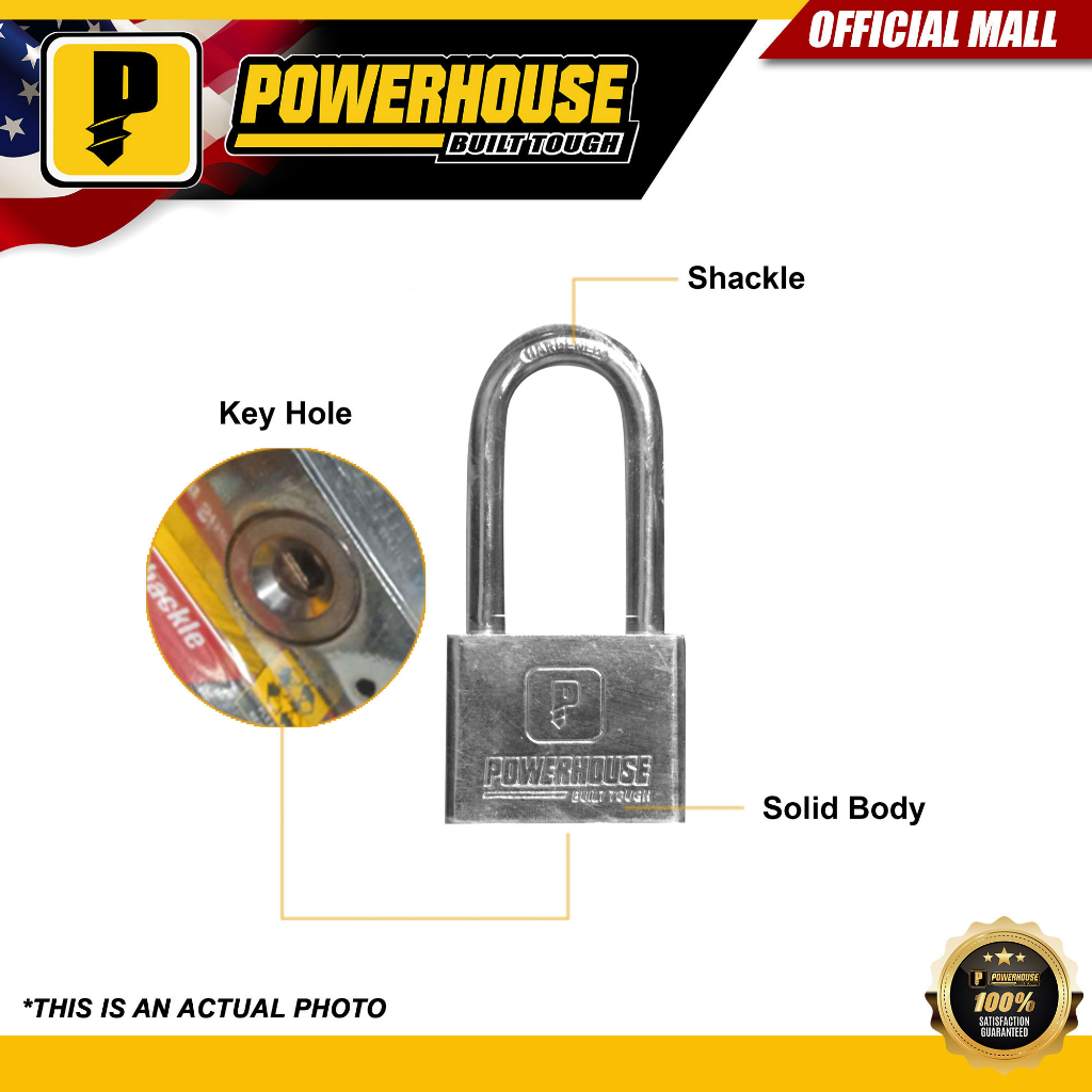 Powerhouse Long Shackle Padlock Chrome Plated Stainless Steel PHDH
