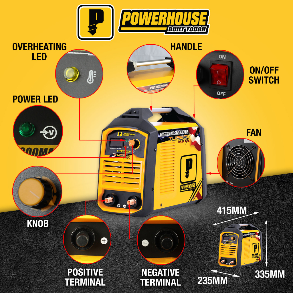 Powerhouse Portable Inverter Type Arc Mma Welding Machine TURBOMAXX 300A SERIES MMA-300AMP PHWM