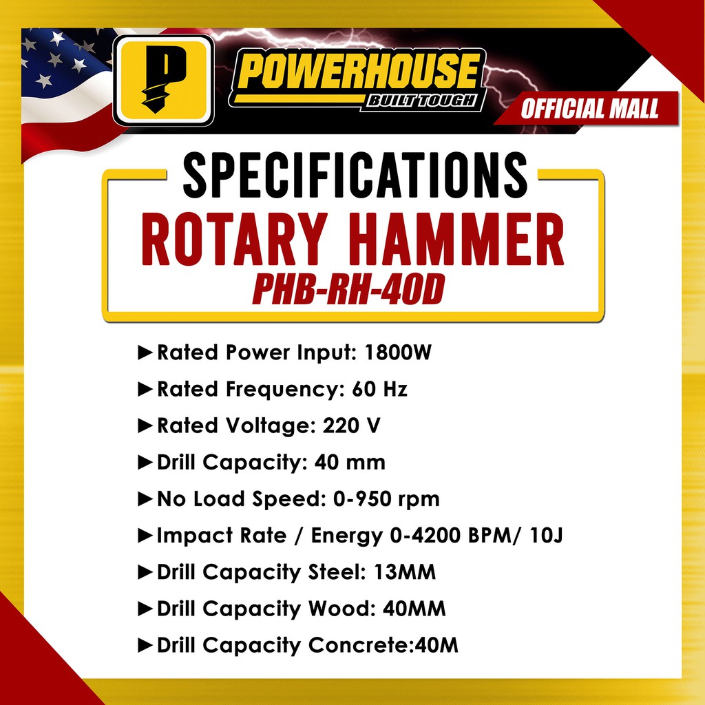 Powerhouse Rotary Hammer SDS MAX 1800W with case PHB-RH-40D PHPT