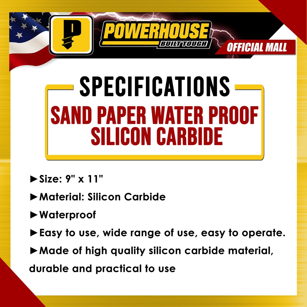 Powerhouse Sand Paper Sandpaper Water Proof Silicon Carbide 9" x 11" Sold Per Piece PTAA