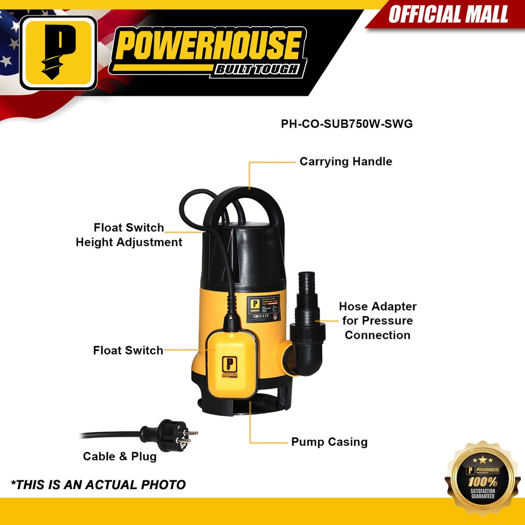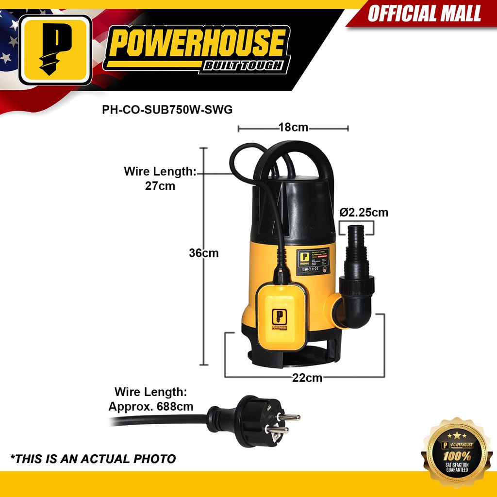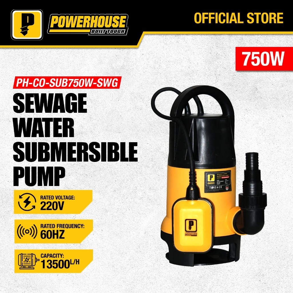 Powerhouse Submersible Pump 750W Clear Water | Sewage Water Pump Copper Wire PHMB