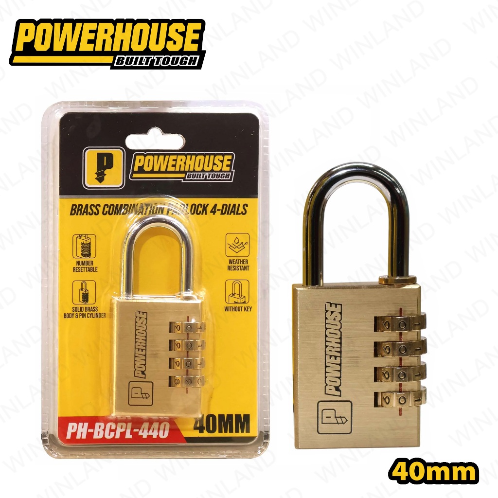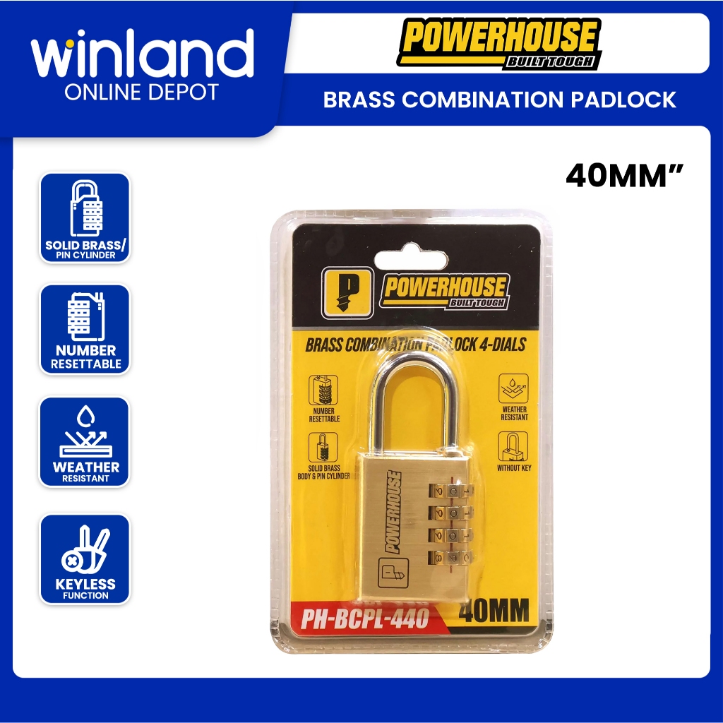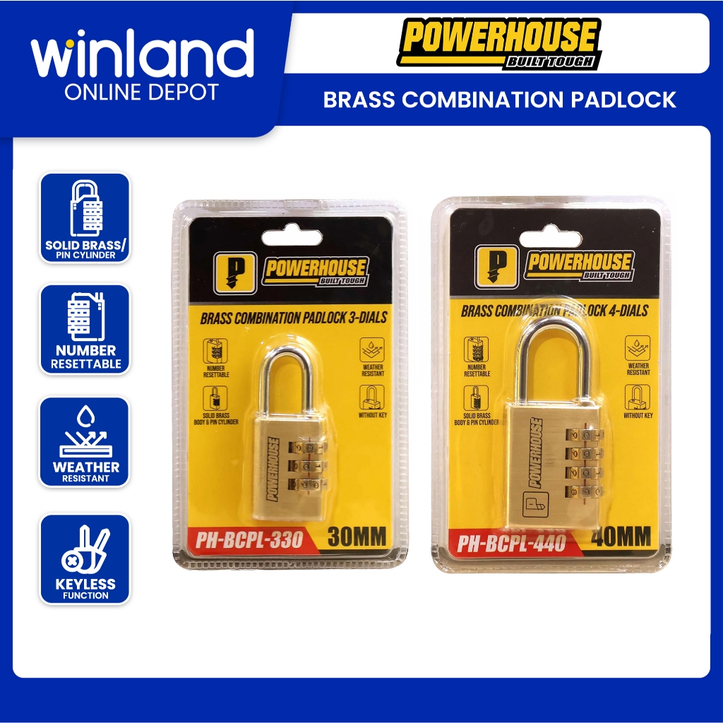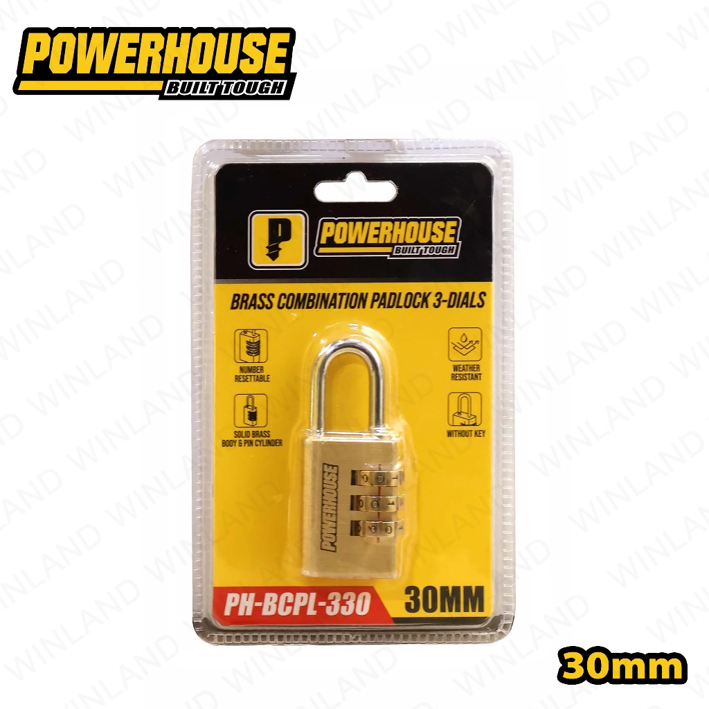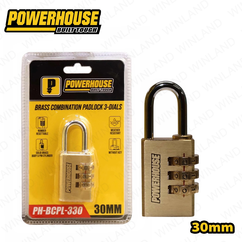 Powerhouse by Winland 30mm Brass Combination Padlock 3Dials w/ Solid Brass|Pin Cylinder PH-BCPL