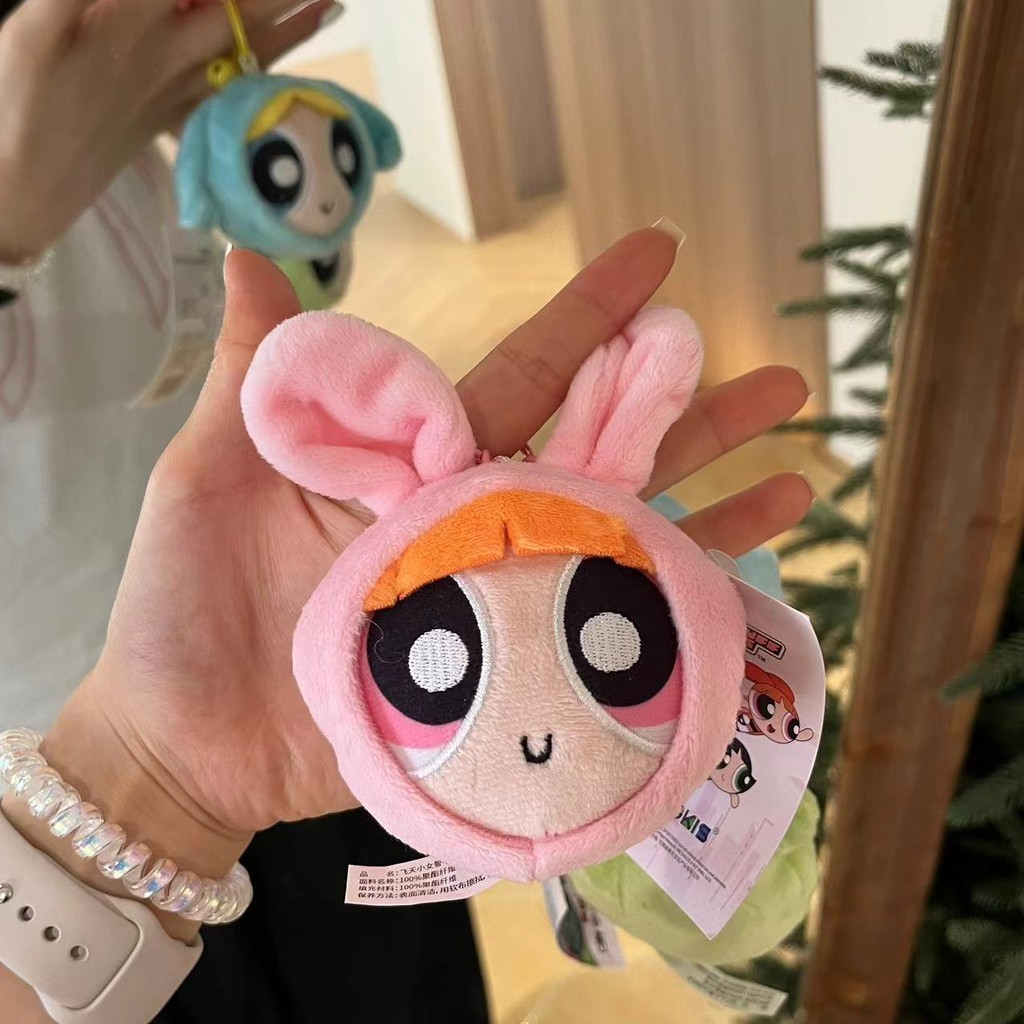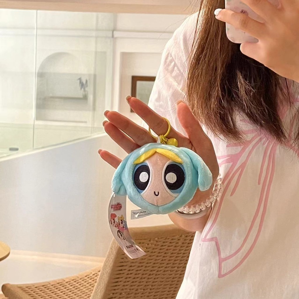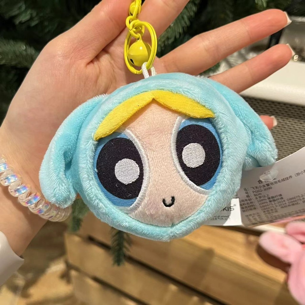 Powerpuff Girls Big Head Bell Decompression Pendant Cute Cartoon Plush Doll Schoolbag Pendant Couple Keychain
