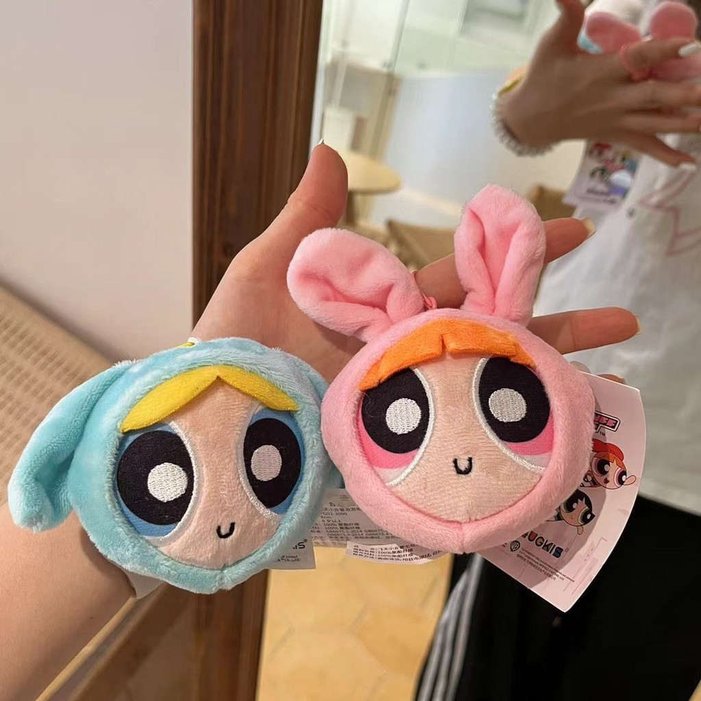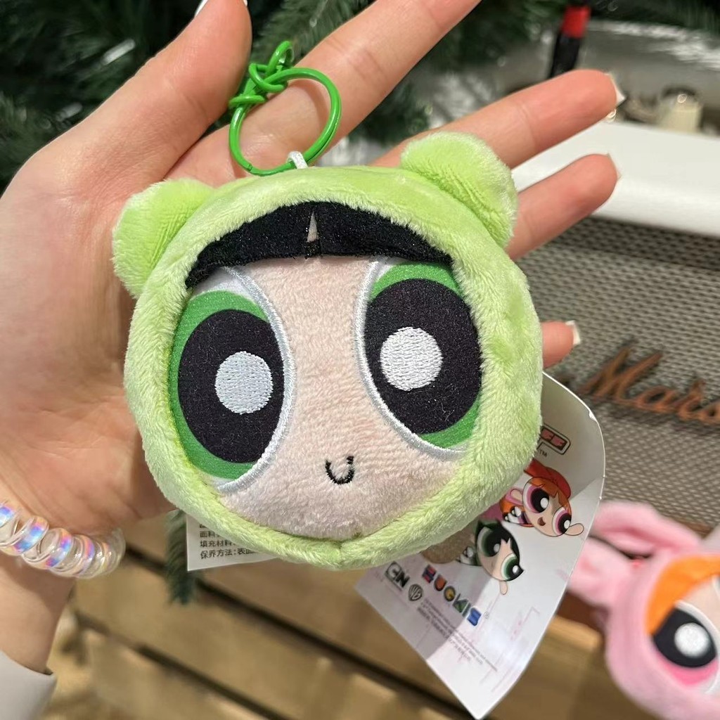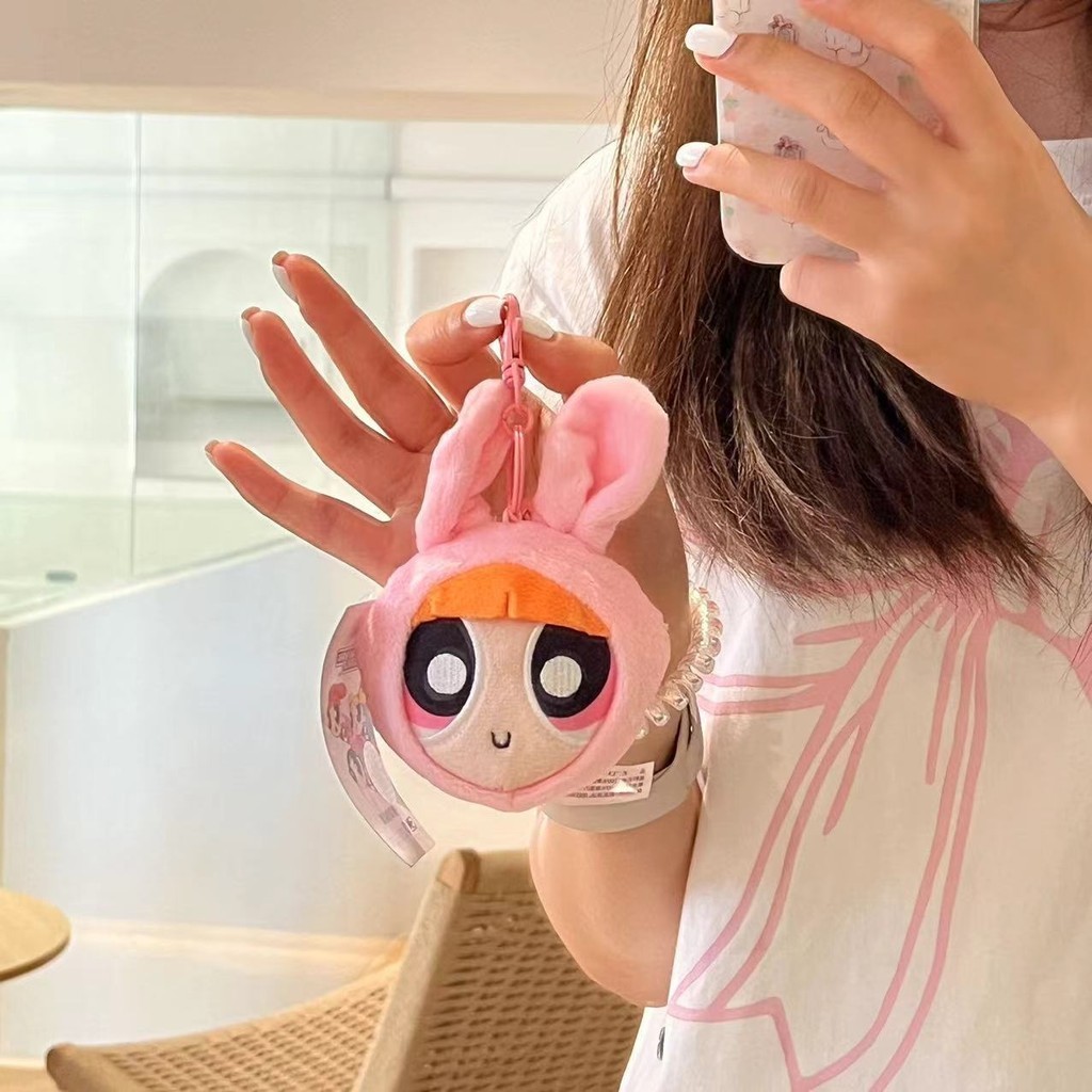 Powerpuff Girls Big Head Bell Decompression Pendant Cute Cartoon Plush Doll Schoolbag Pendant Couple Keychain