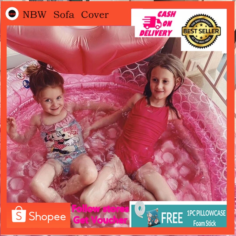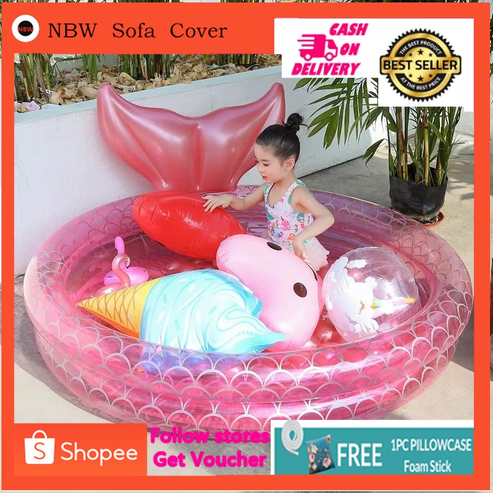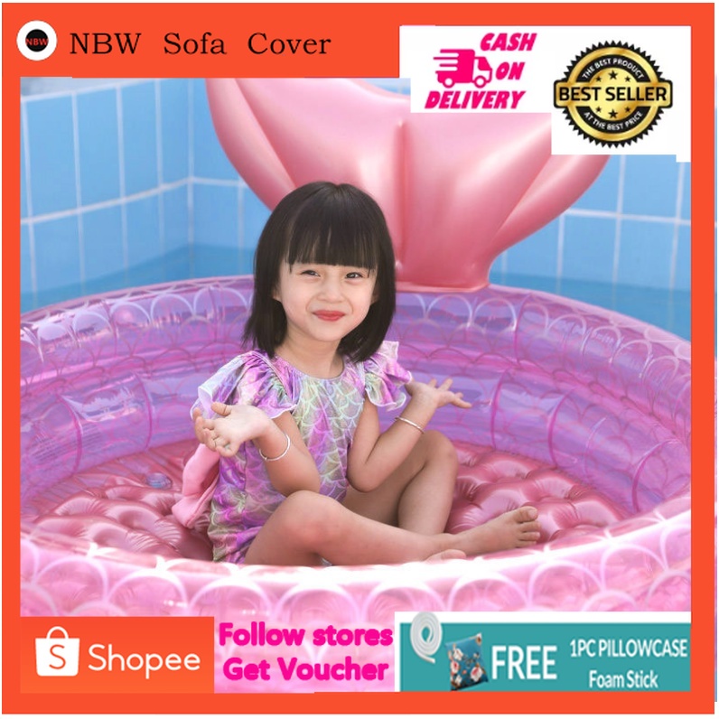 Practical Pink Mermaid Tail Inflatable Pool for Kids Swimming 120cm