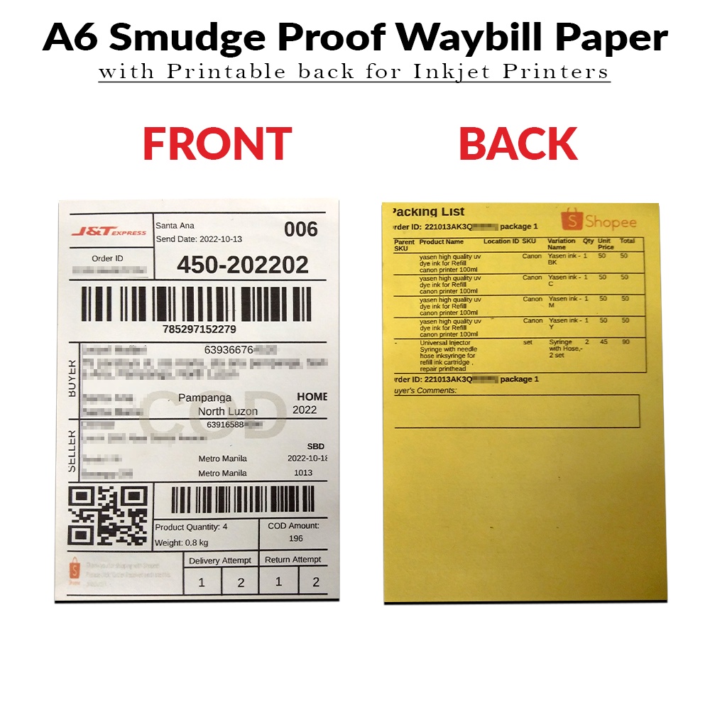 Pre-cut A6 Waybill Sticker Paper for Shopee orders Matte & Glossy 50pcs