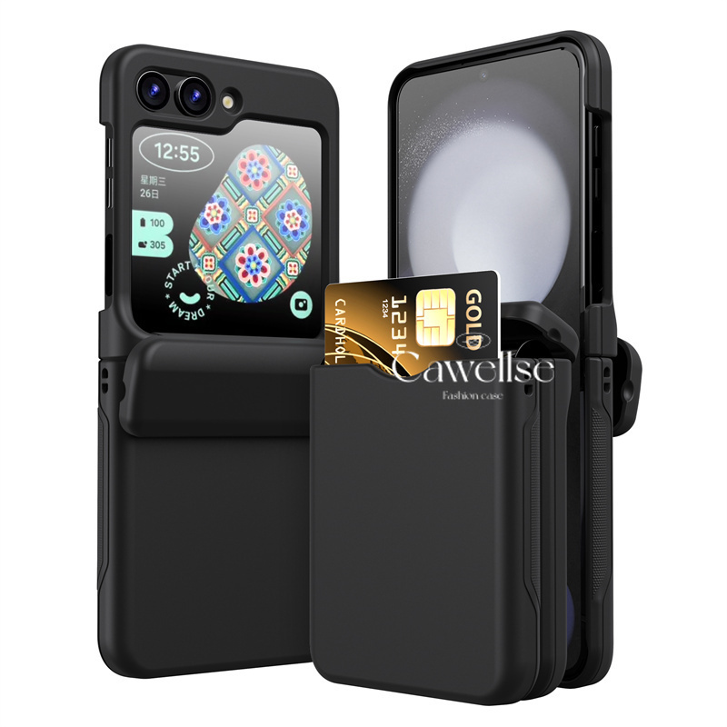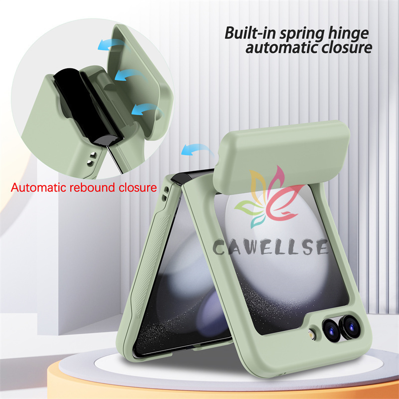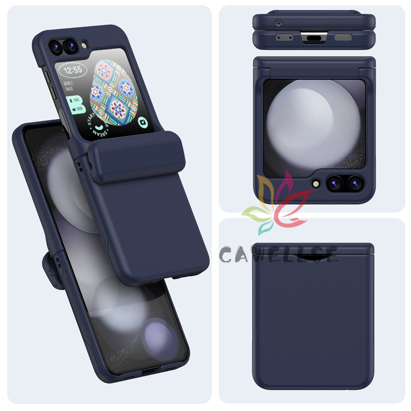 Premium Modern Neat Style Spring-Loaded Hinge Cover Wallet Casing Samsung Galaxy Z Flip 5 Z Flip 4 Z Flip 3 Matte Hard PC Back Case Cover Flip5 Flip4 Flip3