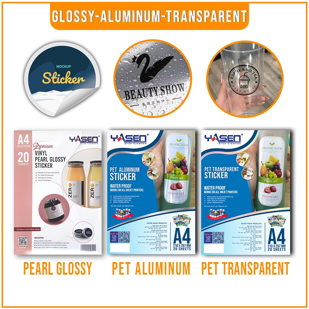 Yasen A4 Premium Vinyl Pearl Sticker Glossy & Matte Sticker Paper 150GSM 20 Sheets
