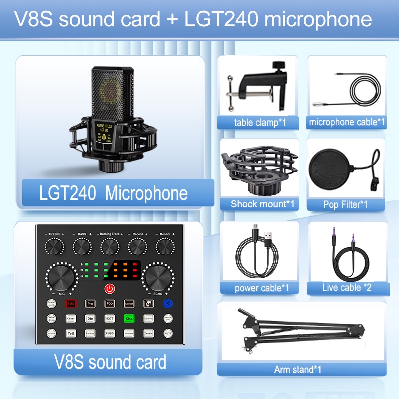Premium suit V8 sound card V8S, for live stream and recording with condenser microphone complete set