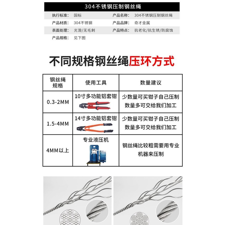 Pressing Wire Rope Sling Lifting Wire Rope Burglarproof304Stainless Steel Wire Rope Pressing Aluminum Sheath Can Be Customized