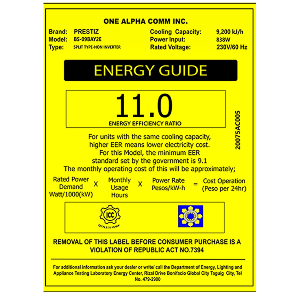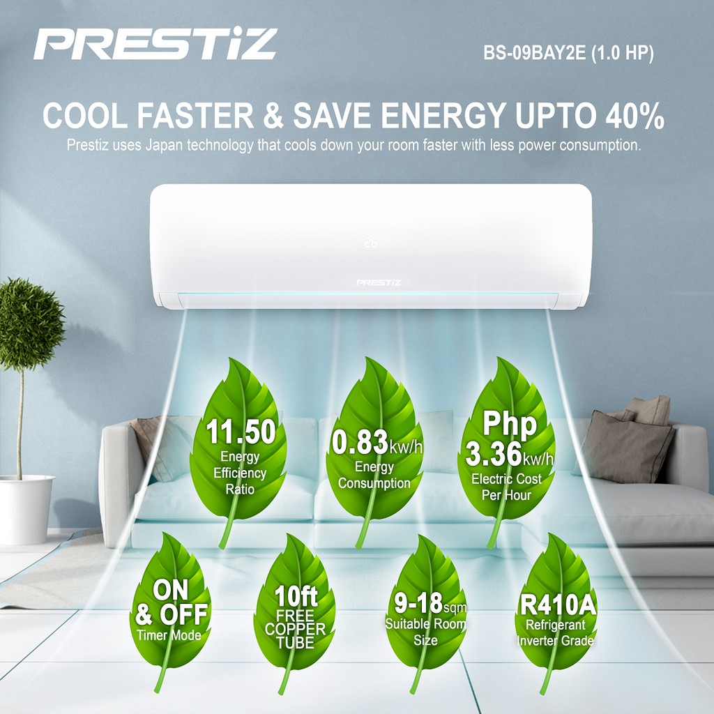 Prestiz 1.0 HP Basic Non - Inverter Split Type Air Conditioner / BS-09BAY2E