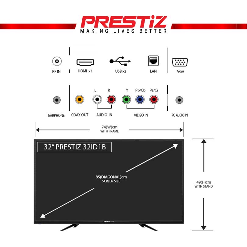 Prestiz 32" Analog Basic LED TV with Free Wall Bracket [ 32IHB03 ]