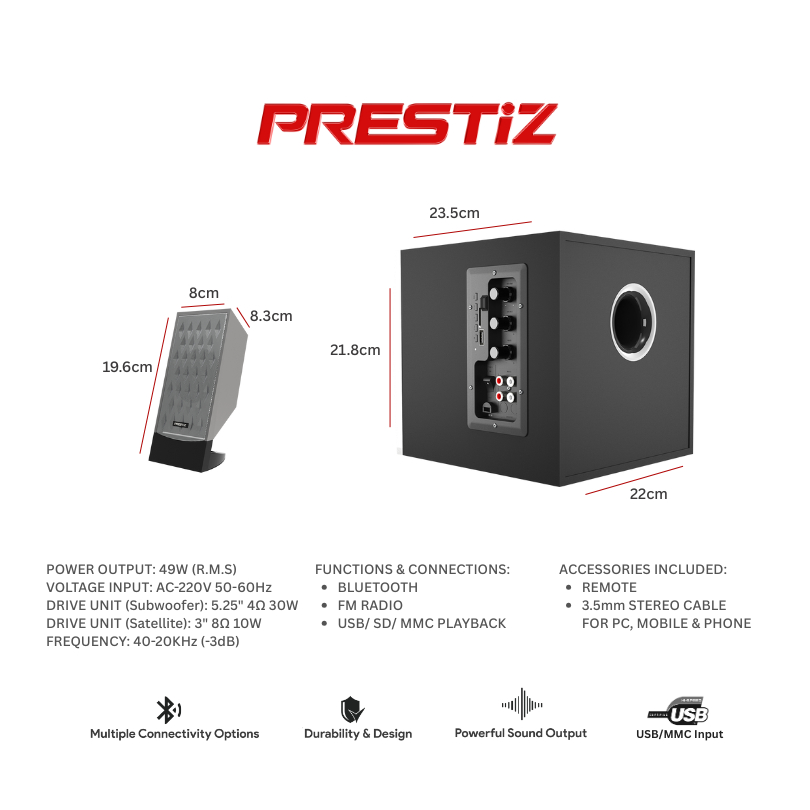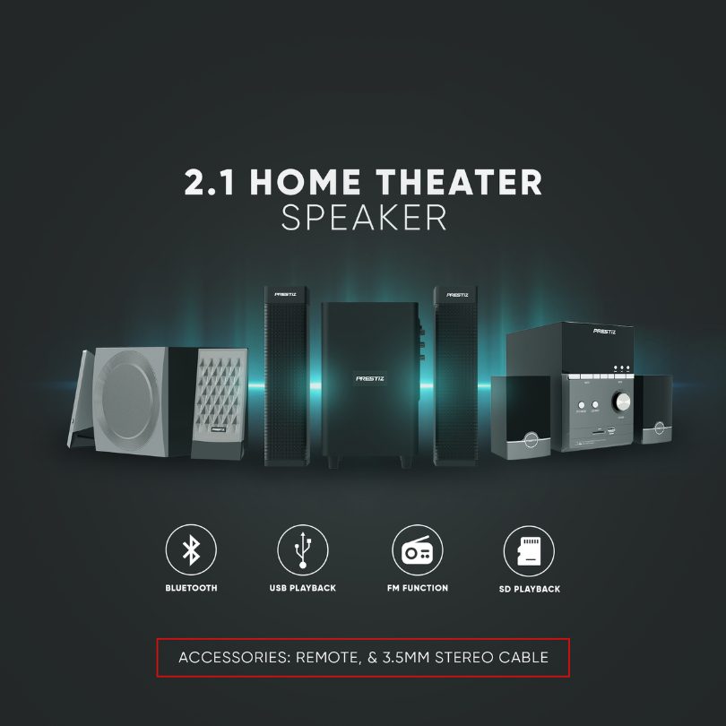Prestiz HT-A3311M 2.1 Channel Home Theater Speaker System w/ Bluetooth / Audio Sound System