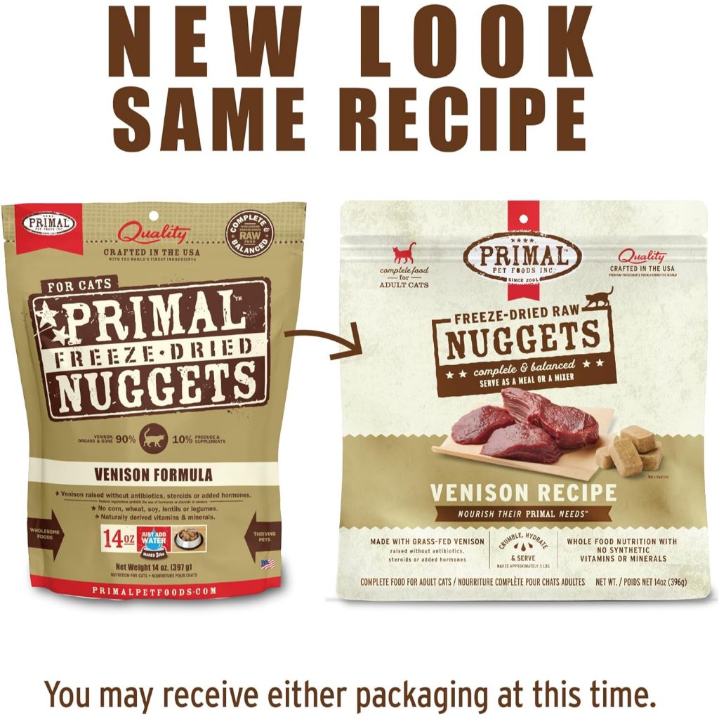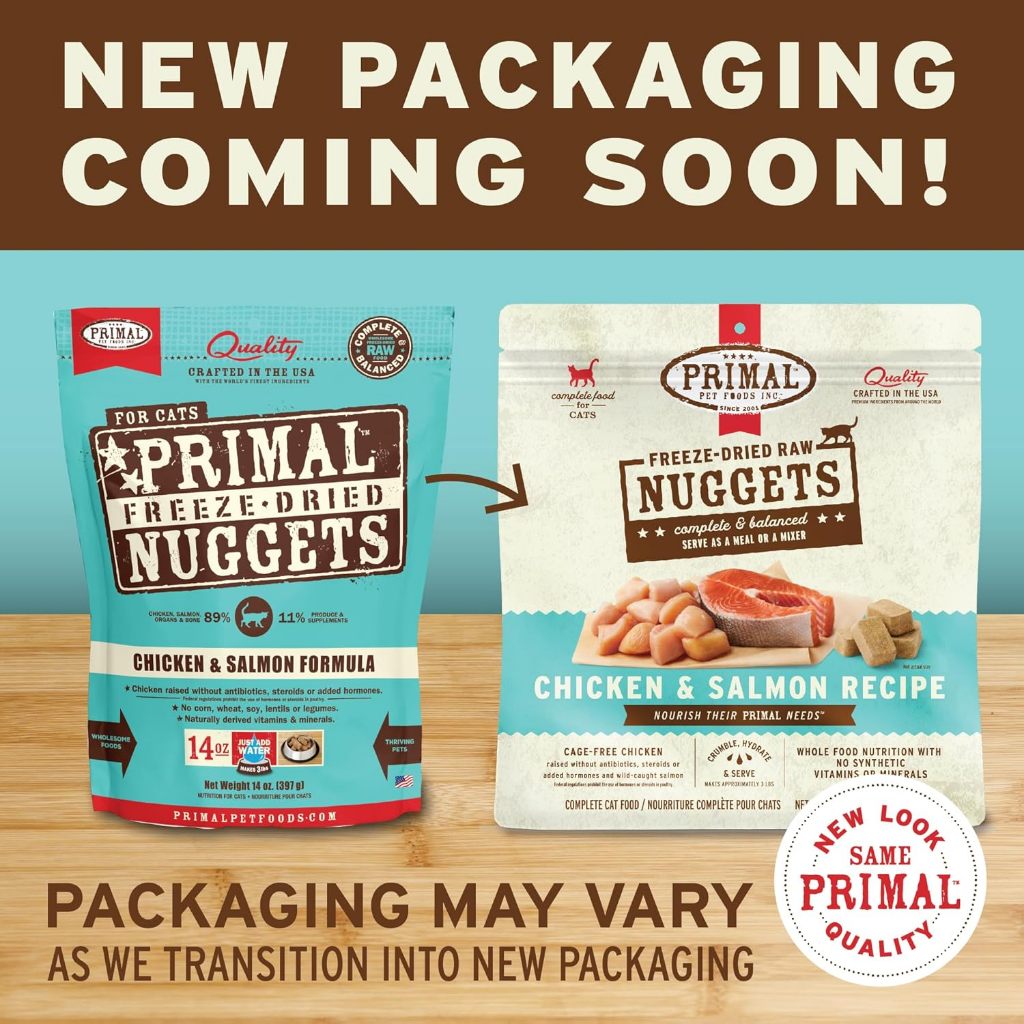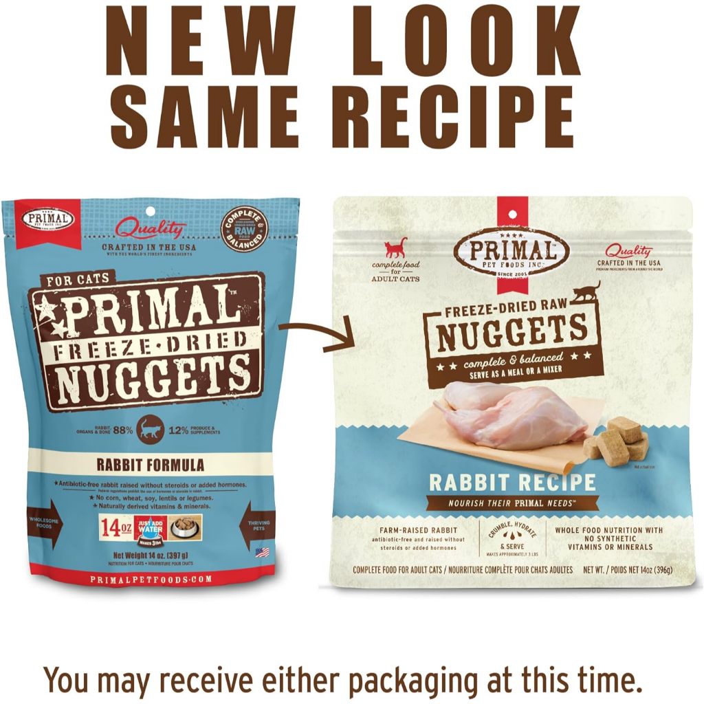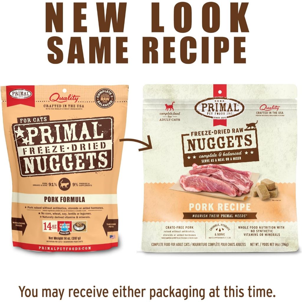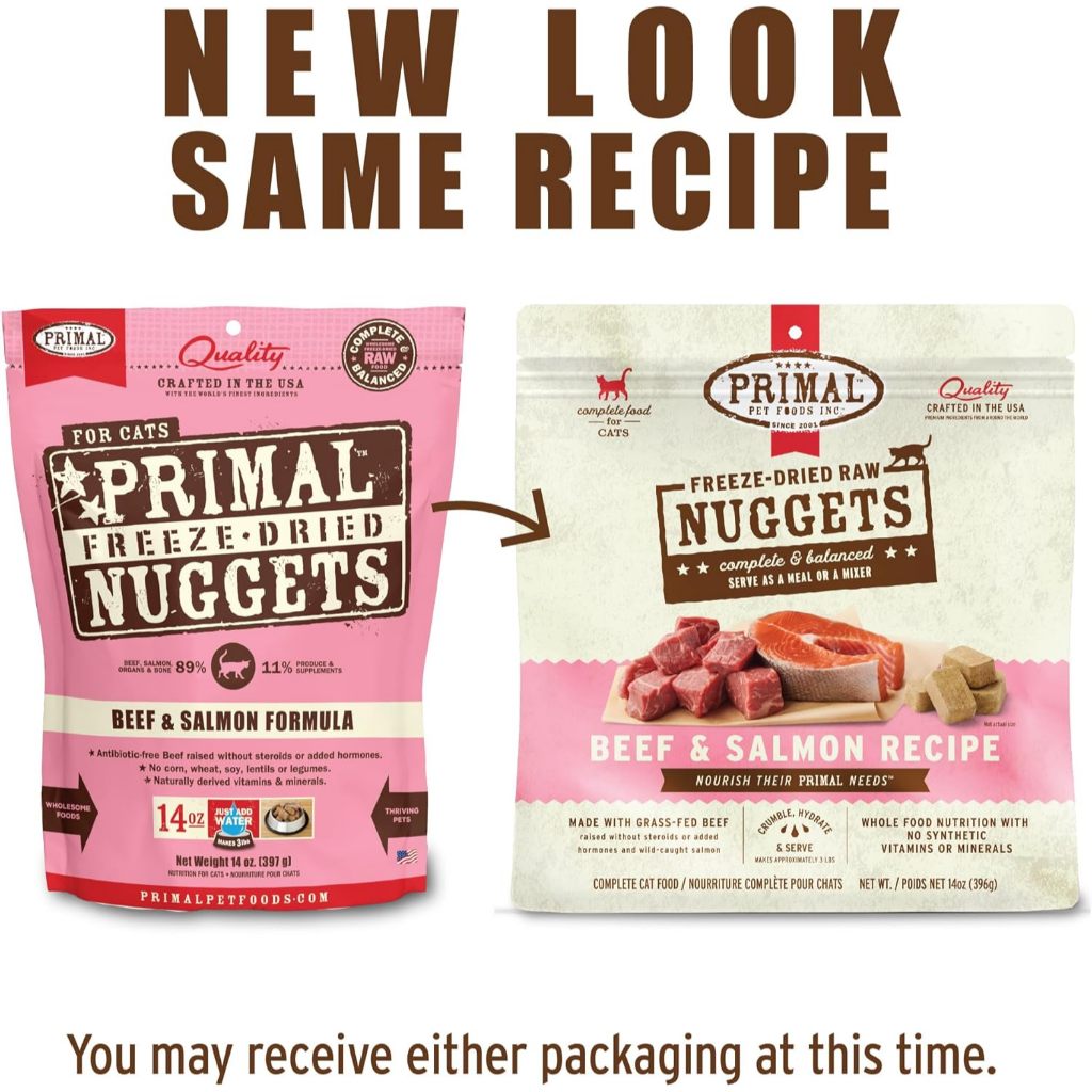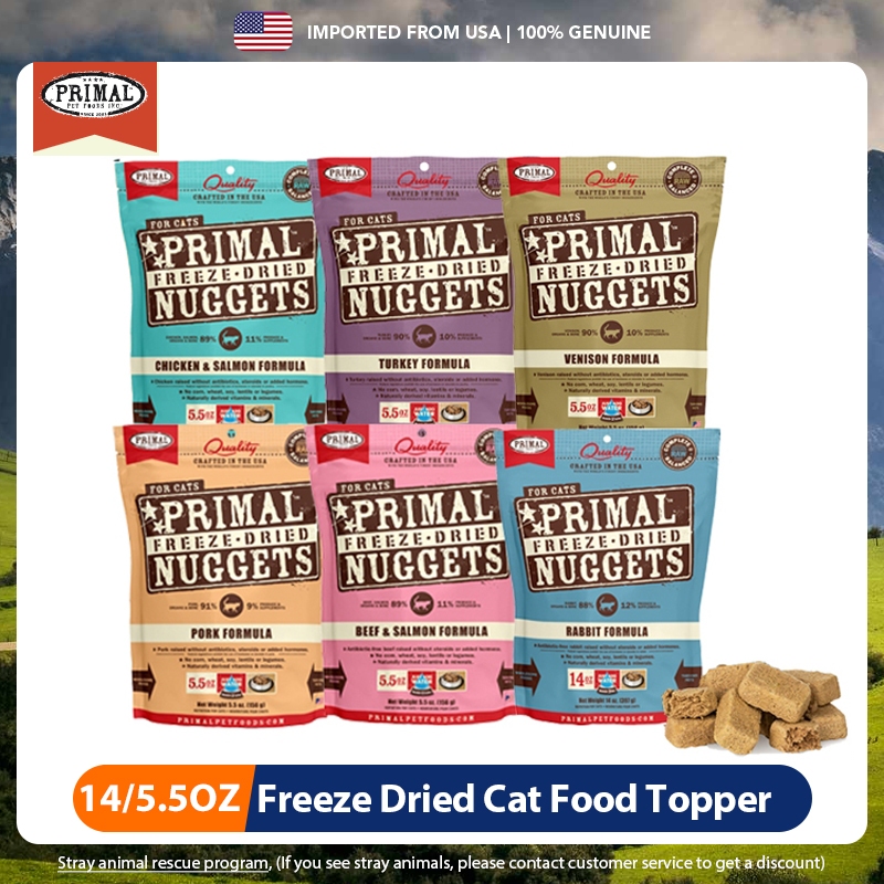 Primal Freeze Dried Cat Food Nuggets Complete & Balanced Meal or Topper Premium Healthy Grain Free High Protein Raw Cat Food with Probiotics Six Flavor(5.5 oz/14 oz)