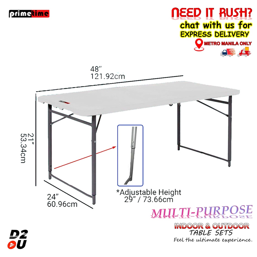 Primetime 4 Ft. Rectangular Fold-in-Half Plastic Table (White)