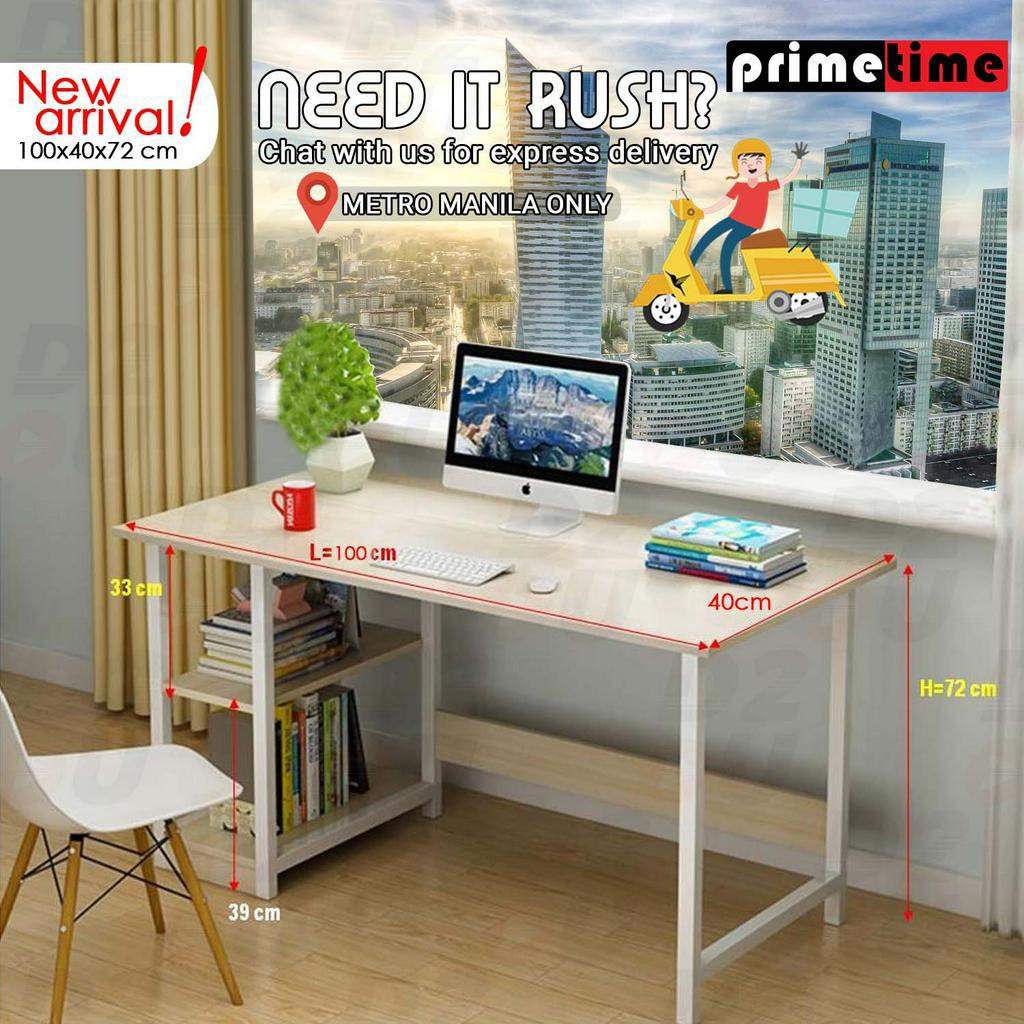 Primetime Computer Desk Study Table Home office Table with 2-Tier Shelves Underneath