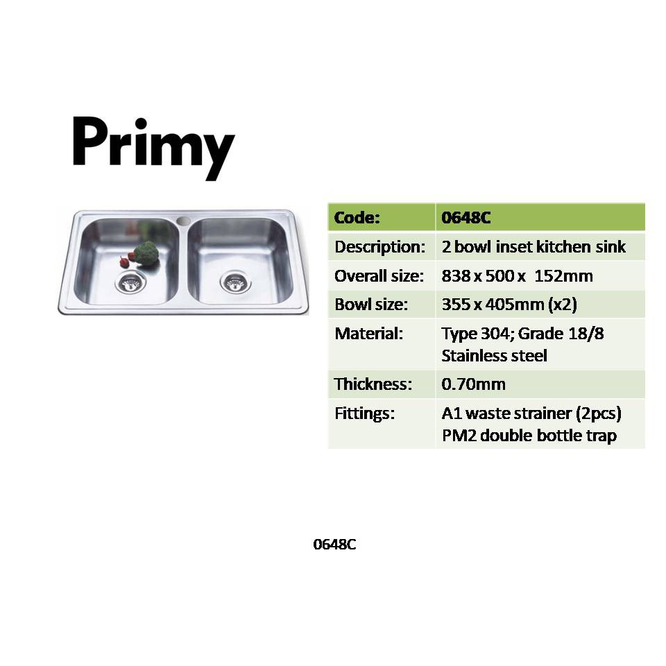 Primy - 2 Bowl Inset Kitchen sink by Sanitec