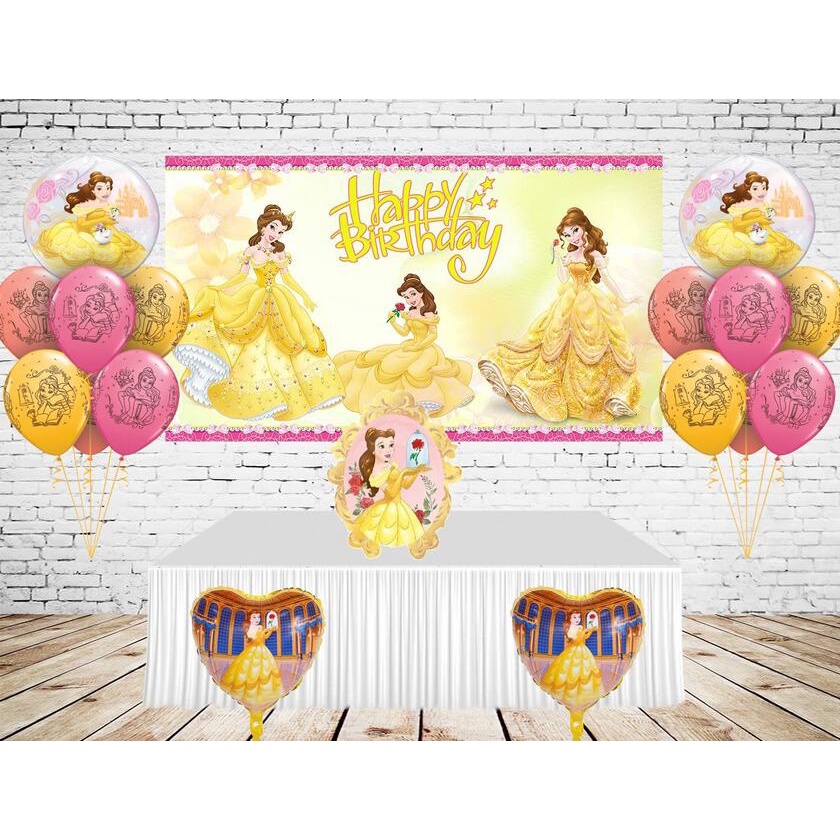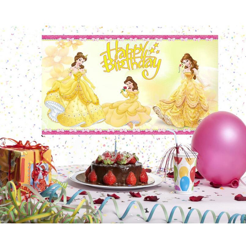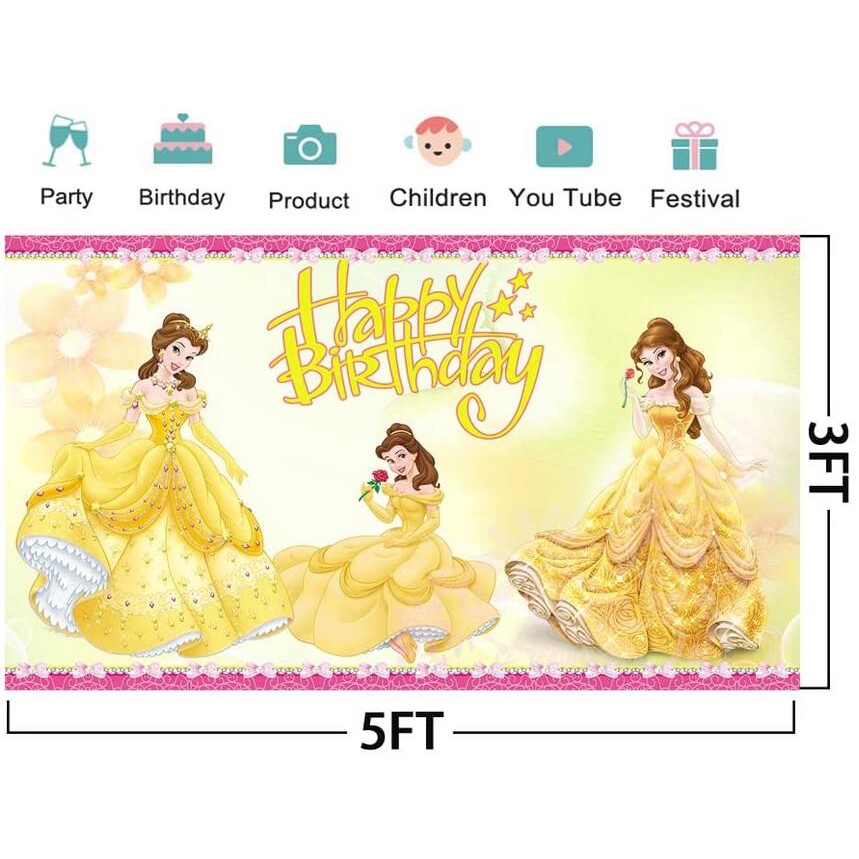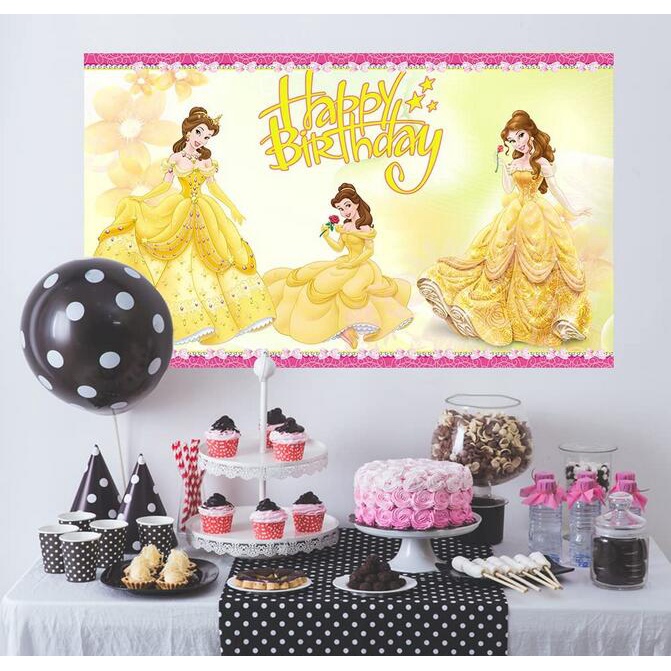Princess Backdrop Birthday Party Supplies Beauty and The Beast Photo Backgrounds Princess Belle Theme Baby Shower Banner for Birthday Cake Table Decoration