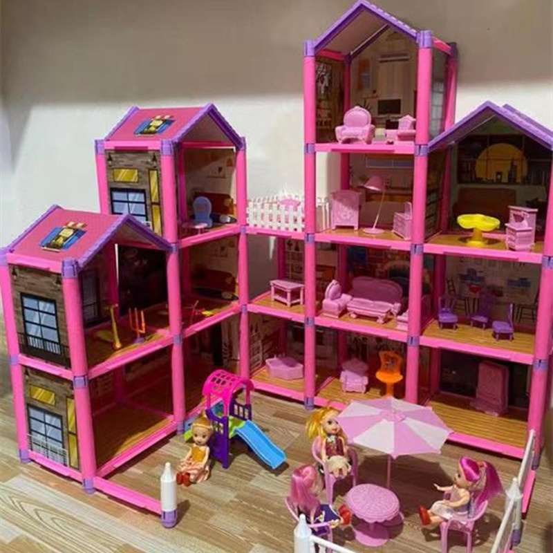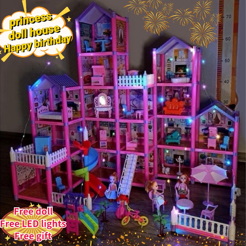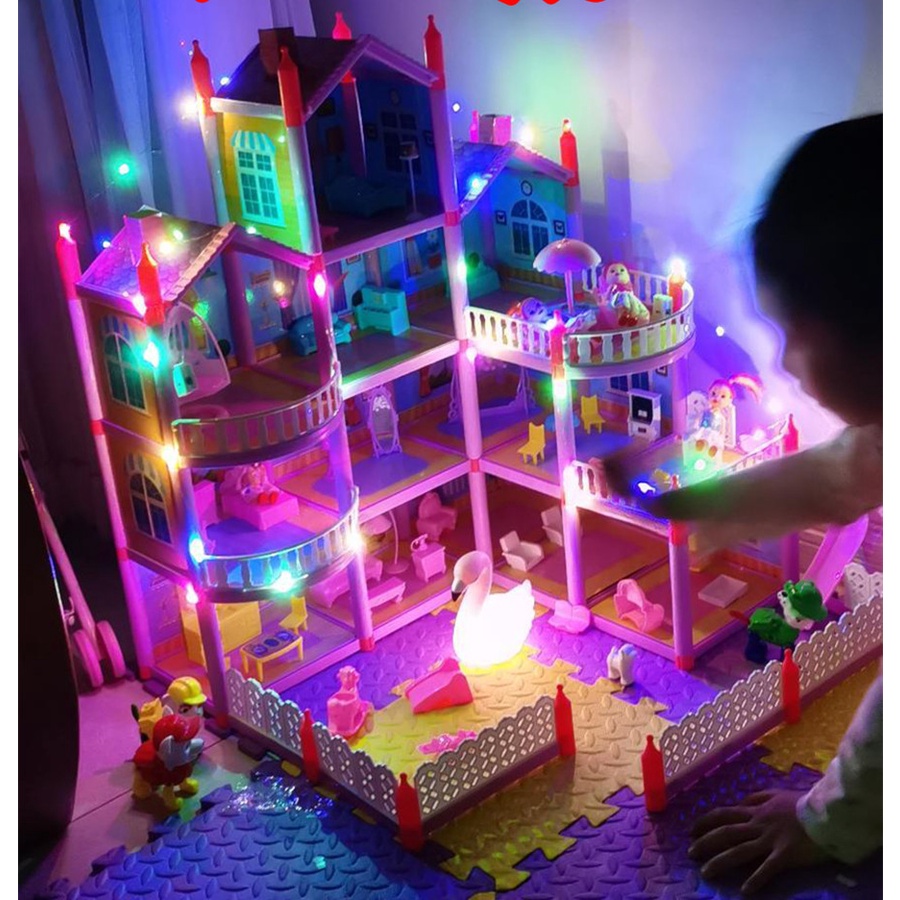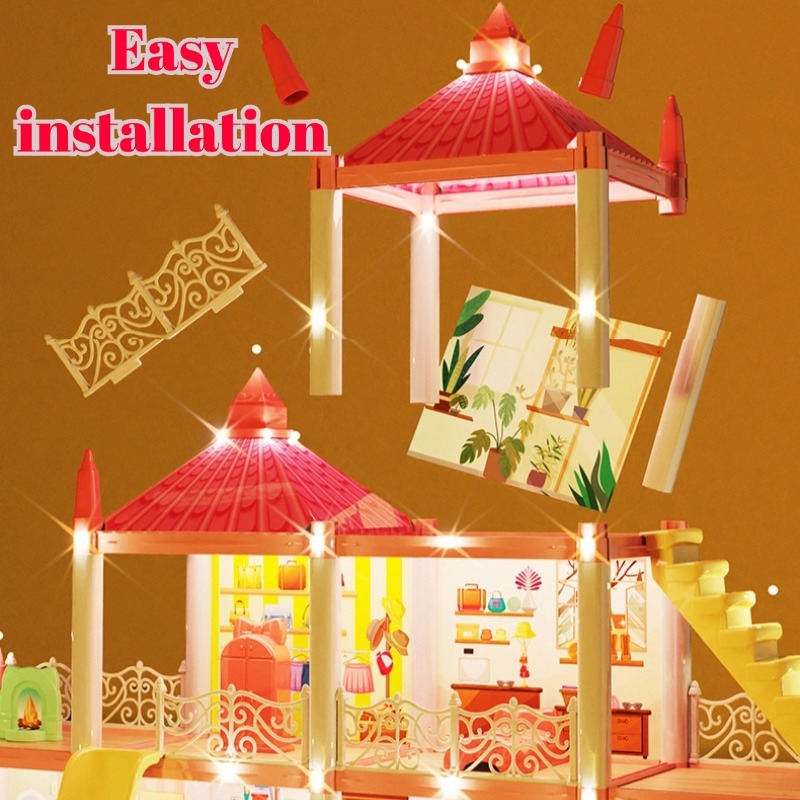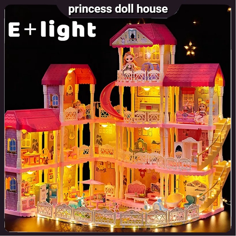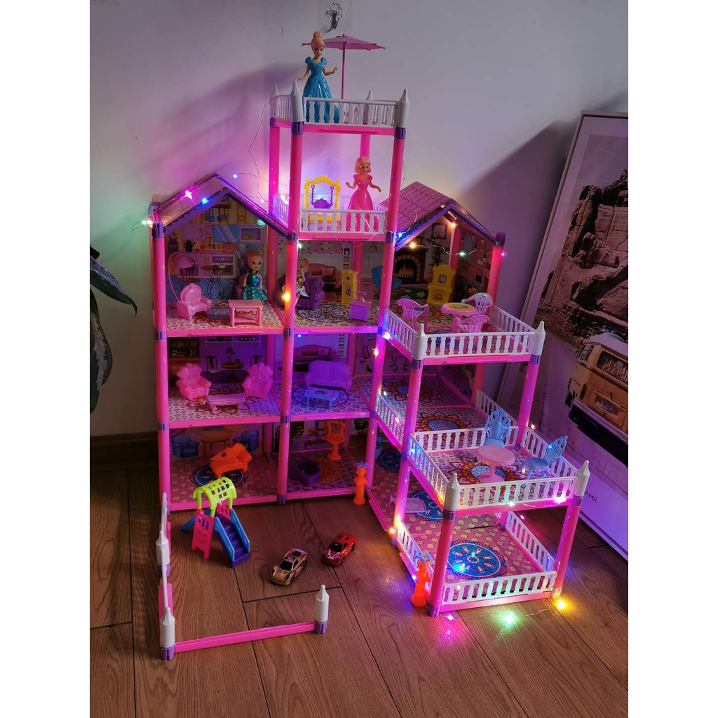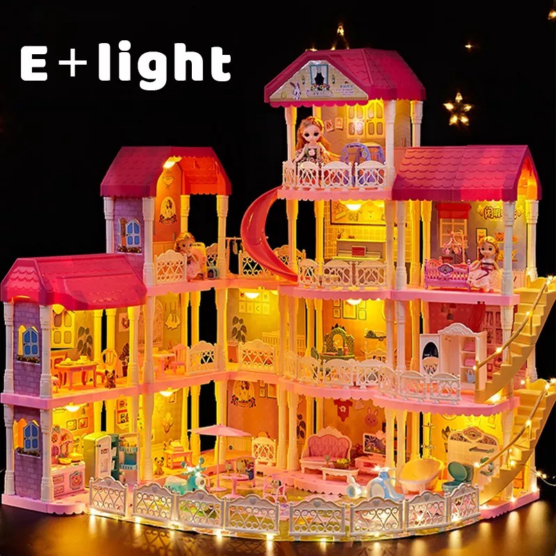 Princess Dream Castle Doll House Pretend Play for Girls Dollhouse Playset Villa With Light And Slide