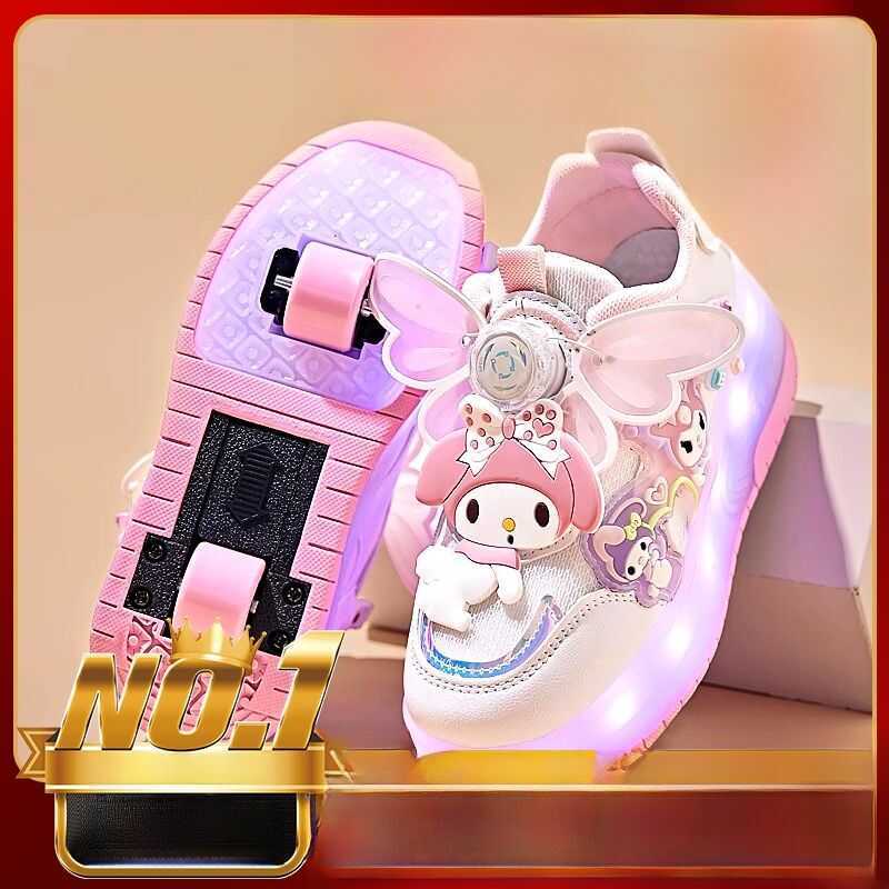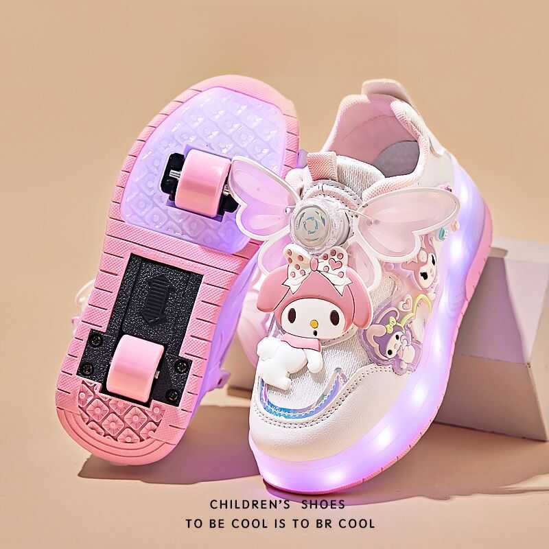 Princess Girl Roller Skates Children's Double Wheel Flashing Light Walking Shoes Lightweight A1e