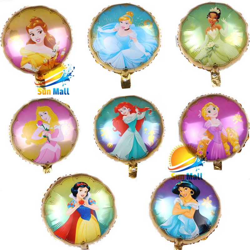 6pc Disney theme Balloons Cinderella Aurora Ariel Snow White Belle Rapunzel Jasmine Tiana PartyNeeds