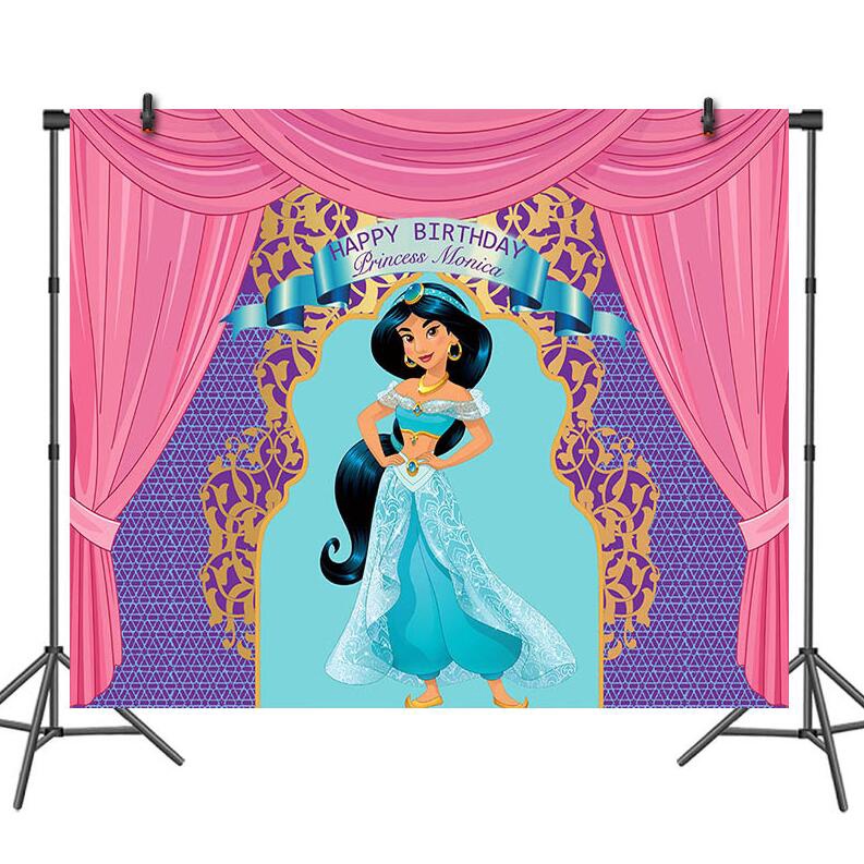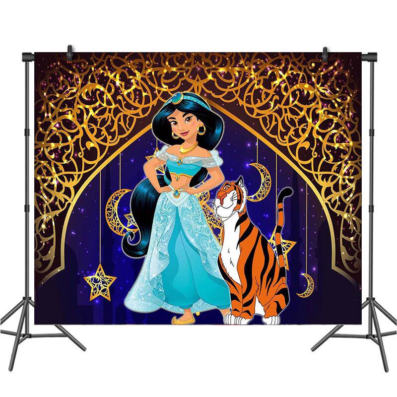 Princess Jasmine Backdrop Princess Theme Photography Background for Girl Children's Birthday Party Decoration Banner Room Decoration Banner 150*100cm