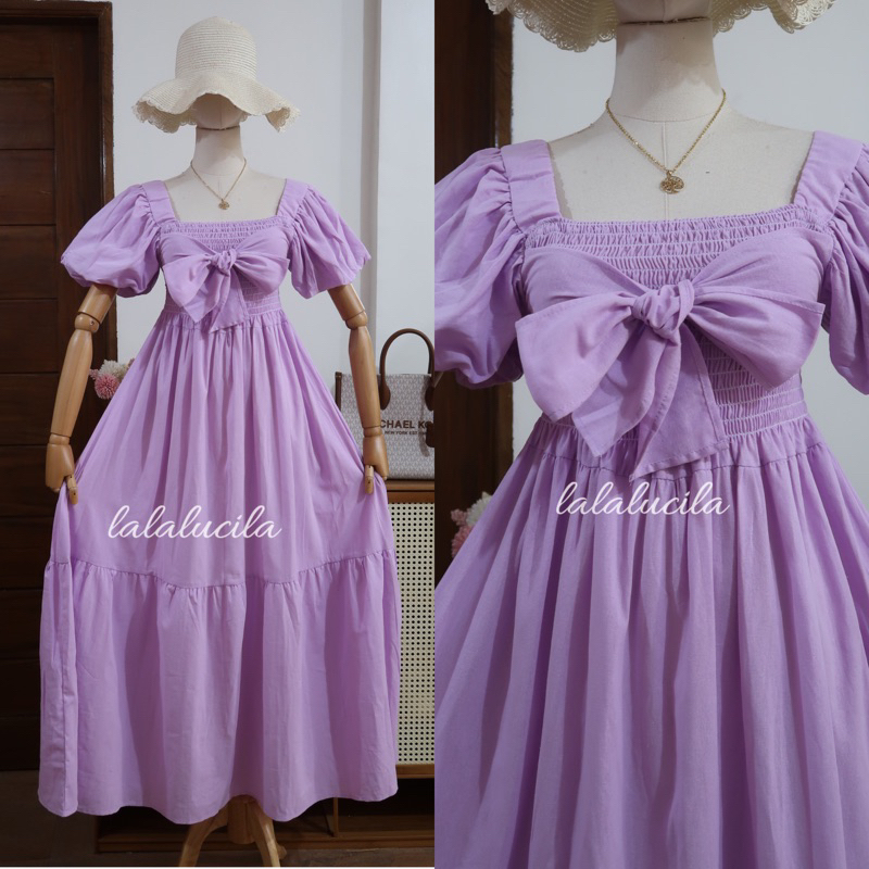 Princess Ribbon Smocking Linen Dress Fit L-2XL