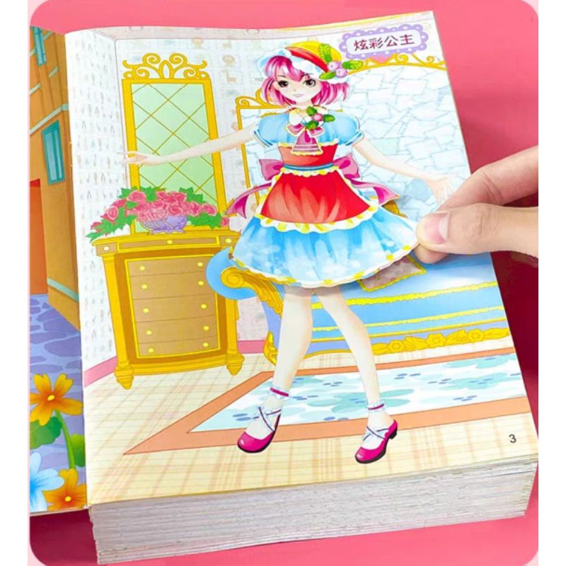 Princess dress-up sticker book Girl Baby dress-up sticker Children's puzzle sticker