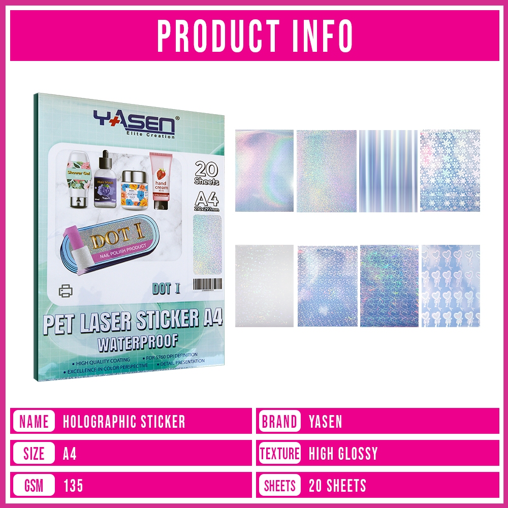Printable Holographic PET Laser Sticker Paper | 20 Sheets | A4 Size | 135gsm