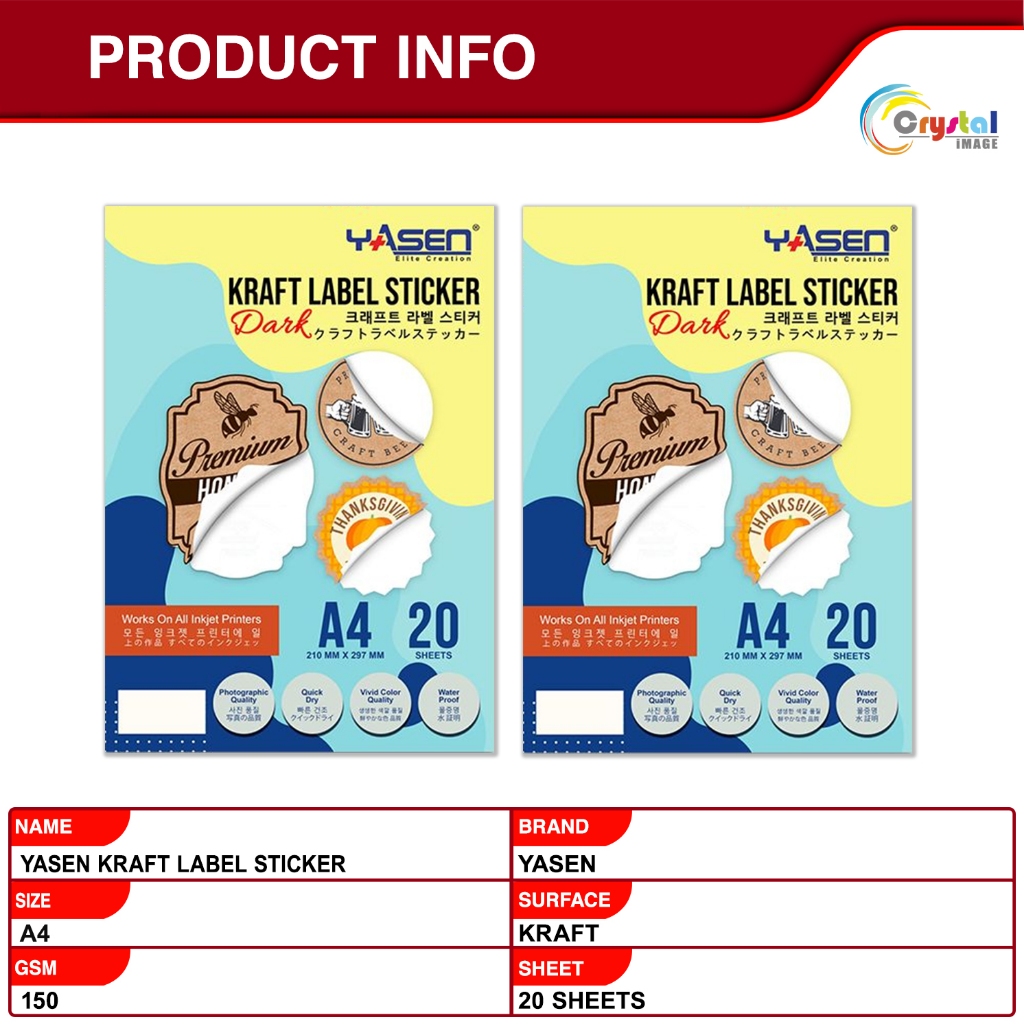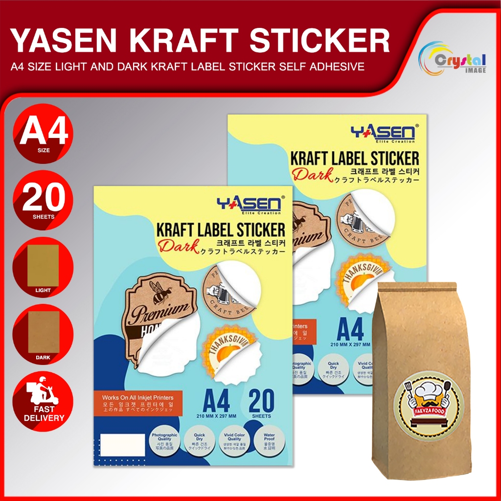 Printable Kraft sticker paper & sticker paper A4 size for inkjet printer 20pcs