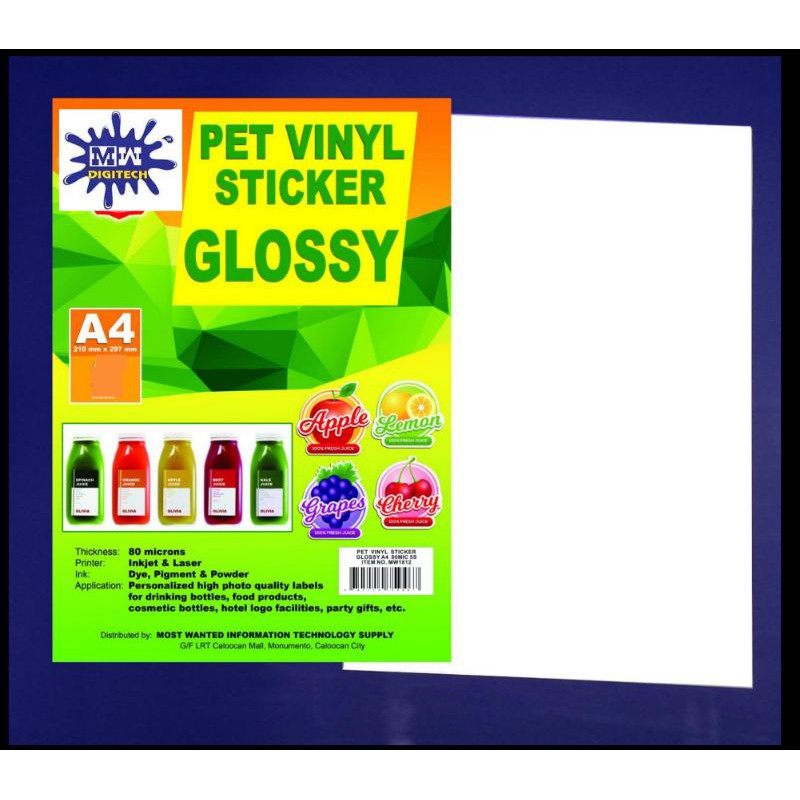 Printable PET Vinyl Sticker - Glossy White, A4 size