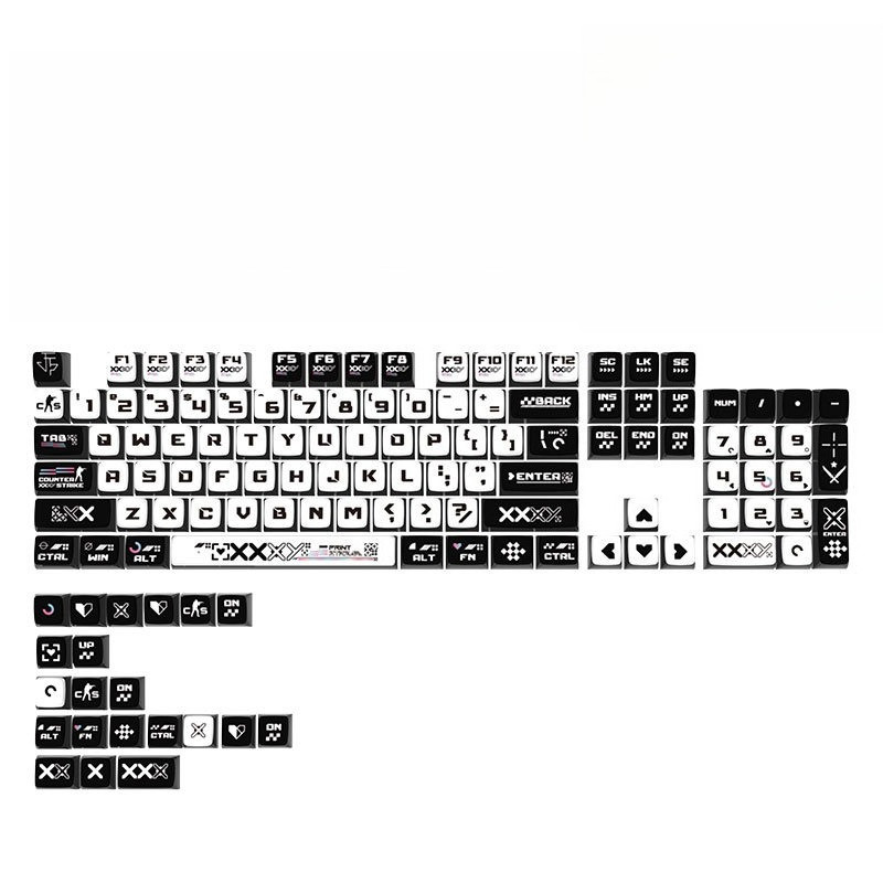 Printed Collection Keycaps 125 Keys SA Profile PBT Wooting Aula F75 RK100 Mechanical Keycap Dye Sublimation Four-sided Light Transmission Pudding Black White Cool Keycaps