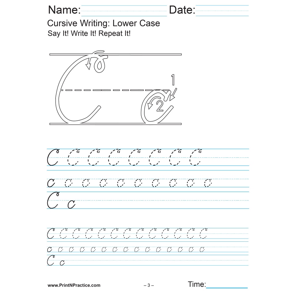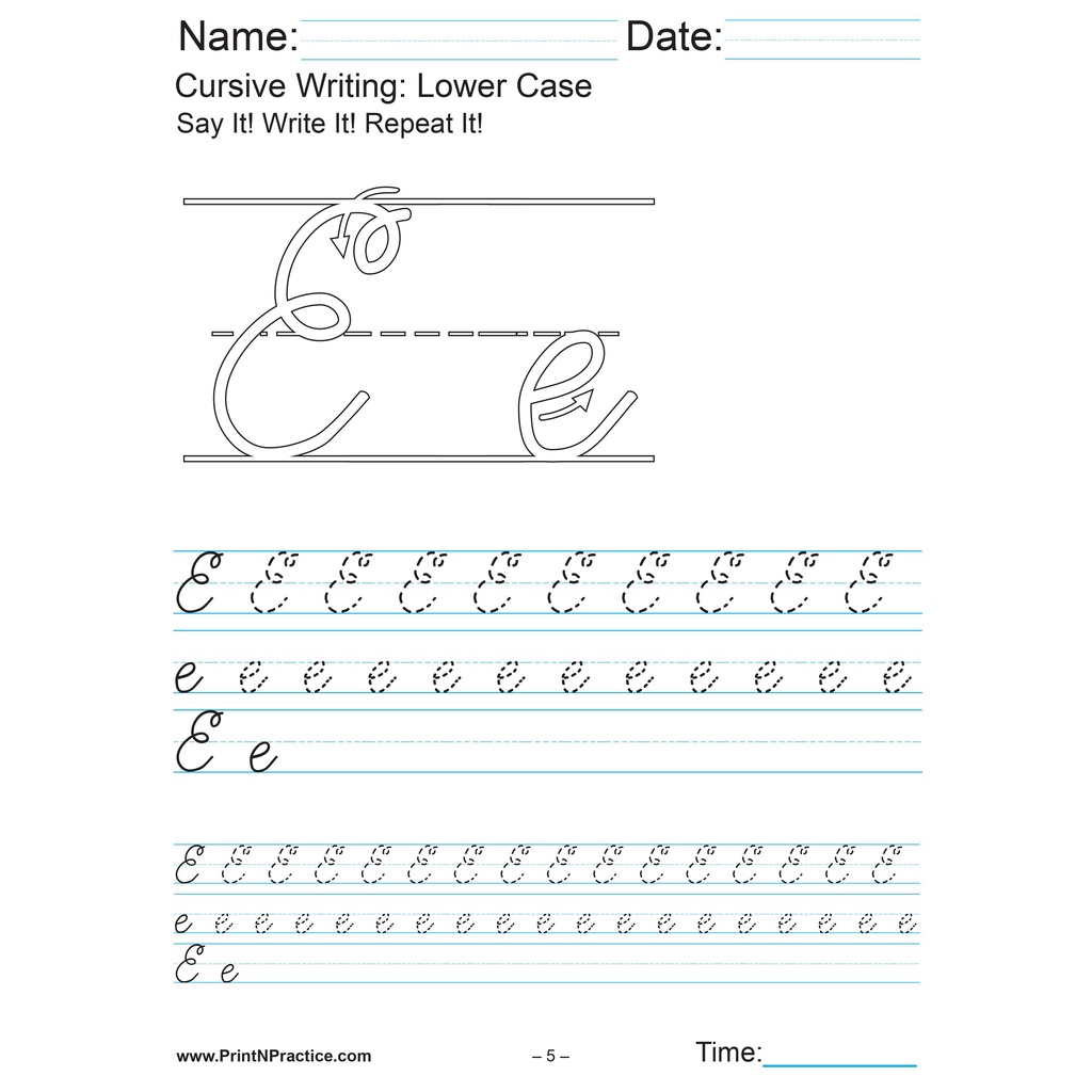 Printed Cursive Writing : Lower Case exercises A-Z