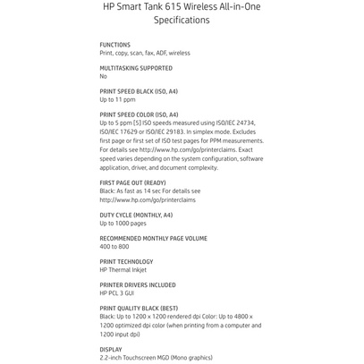 Printer HP 615 Smart Ink Tank (print, copy, scan, ADF, fax, with wifi)