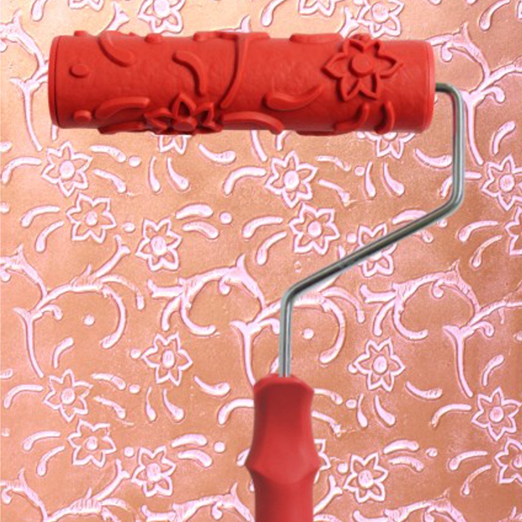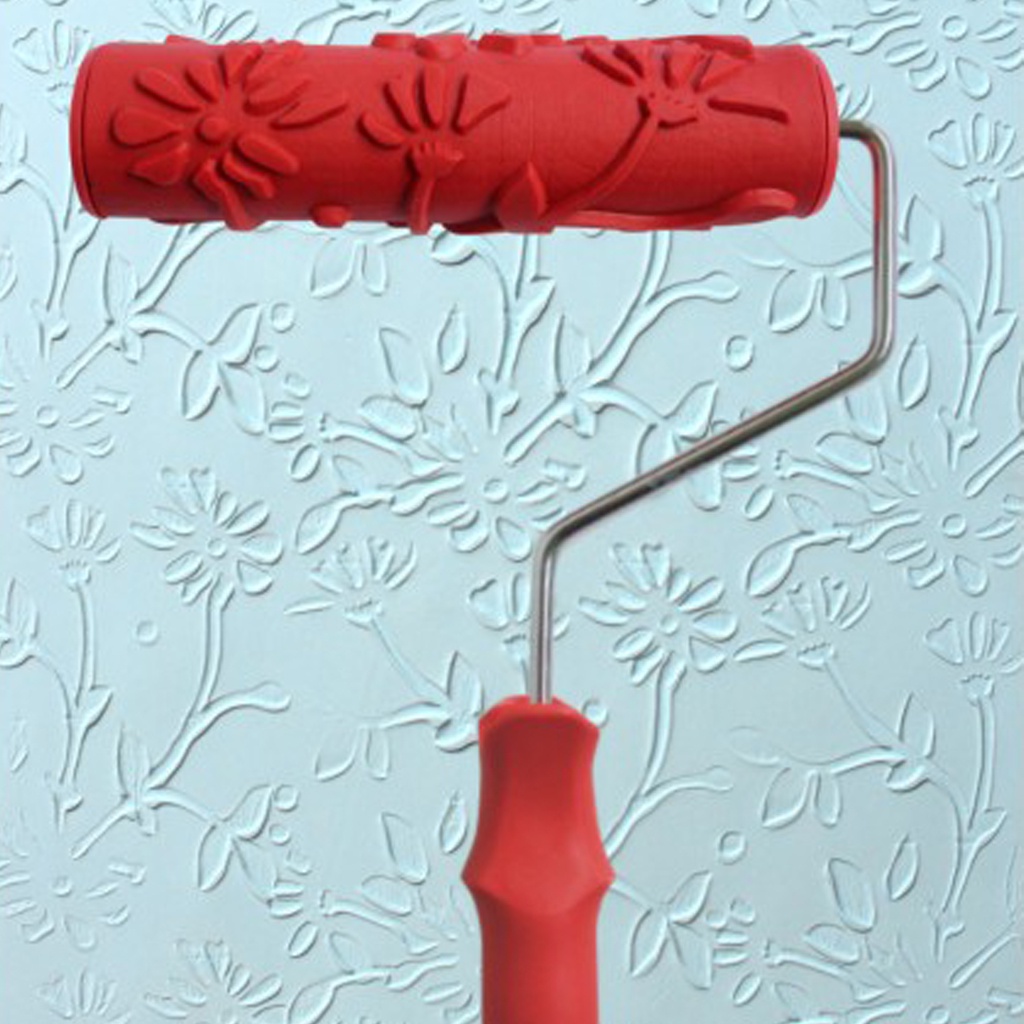 Printing Wall Roller Brush 7 inch Embossing Flower Pattern Paint Roller Wall Painting Brush Sleeve with Handle Wall Decor Tools