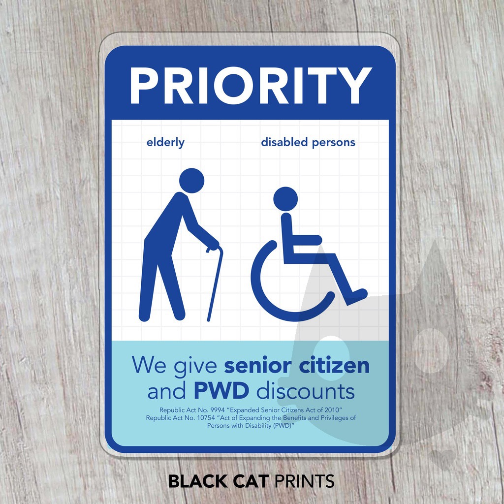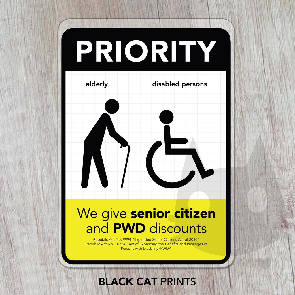 Priority and Discount Sign for Senior Citizens and PWDs / 2 in 1 Laminated Signs / Sign Board