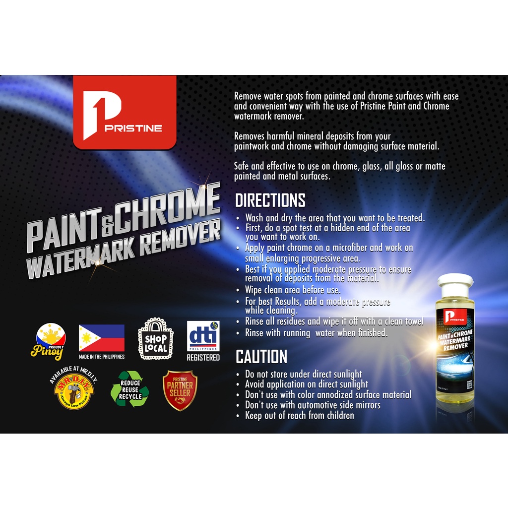 Pristine Paint & Chrome Watermark Remover- Pangtanggal ng watermarks at paint katawan ng sasakayan