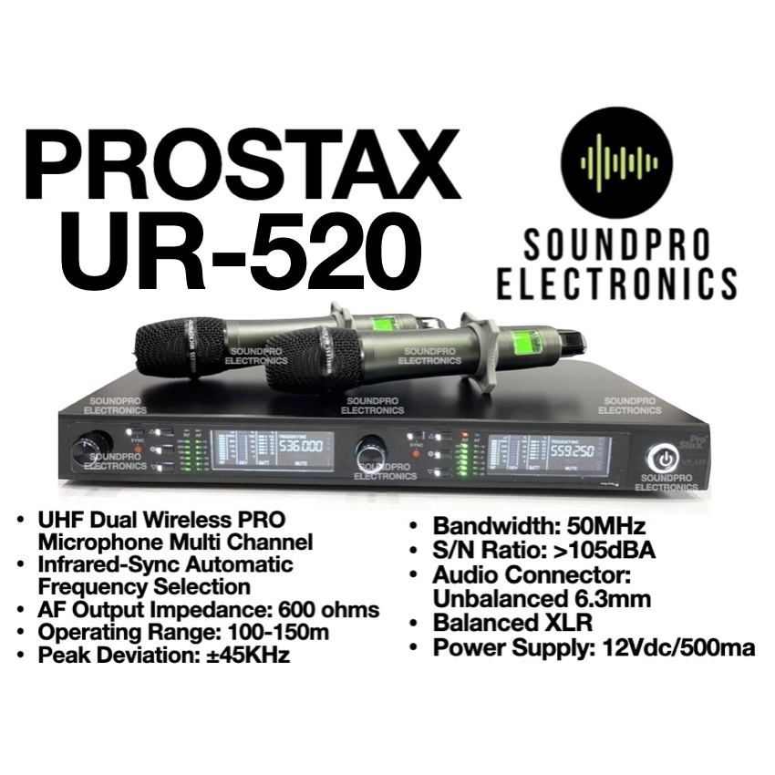 Pro Stax UR-520 UHF Dual Wireless PRO Microphone Multi Channel InfraRed Sync Auto Freq. Selection