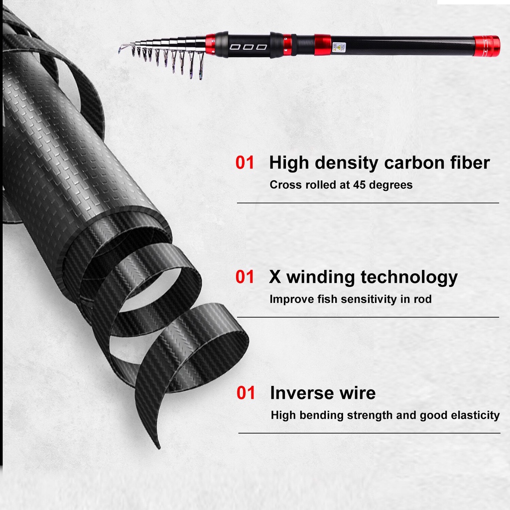 Proberos Fishing Rod 1.8m 2.1m 2.4m 2.7m 3m 3.6m Joran Prancing Portable Telescopic Spinning Short Section Carbon Fiber Accessories Tfr011