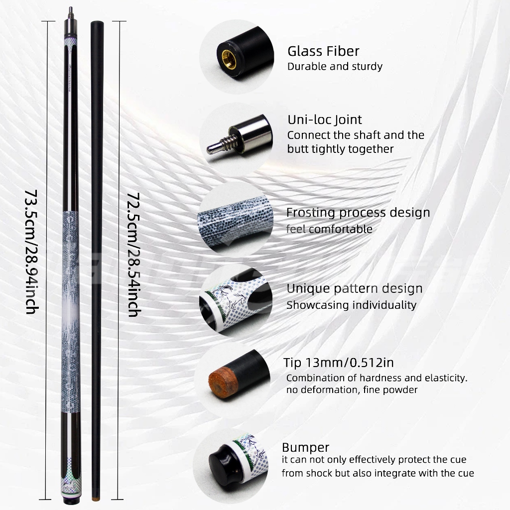 Professional American 9-Ball Pool Cue with Black Technology Carbon Fiber Shaft, Snake Skin Grip, White Horse Elements, and 13mm Tip-COD-billiard cue