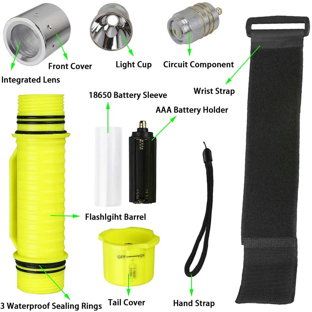 Professional Diving Flashlight, Super Bright LED Diving Light Waterproof Underwater Torch for Scuba Diving and Other Outdoor Activities LED Waterproof scuba Diver Diving