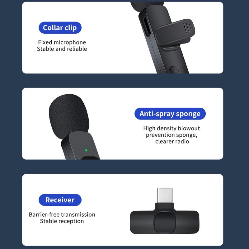 Professional K9 Vlog Wireless Lavalier Microphone Charging Usb Type C Audio Recording Vlog Microphone Low Latency For Live Gaming Live Teaching Mobile Phone