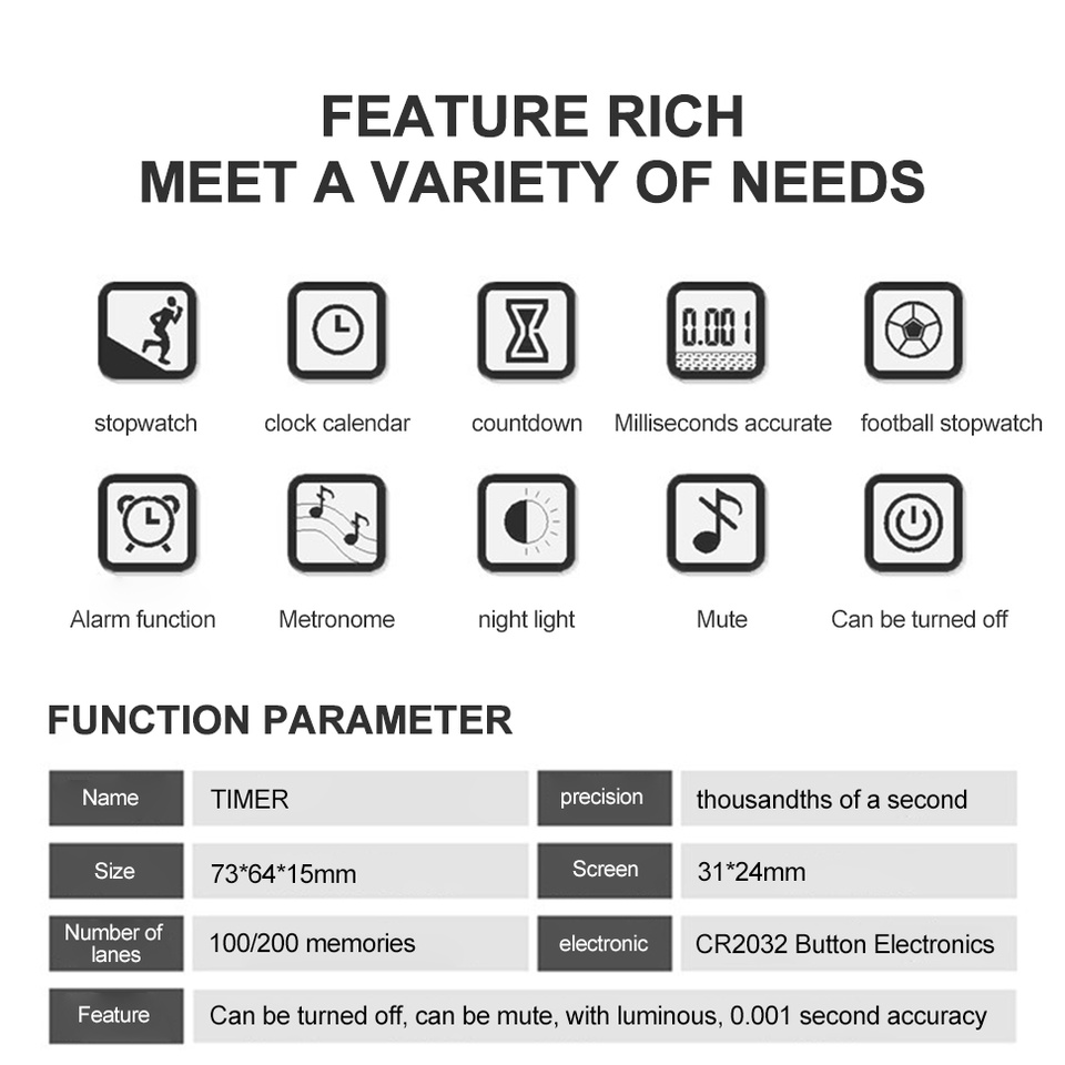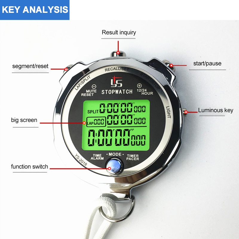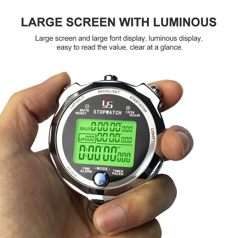 Professional Metal Luminous Digital Stopwatch Timer Multifuction Portable Sports Running Training Timer Chronograph Stop Watch
