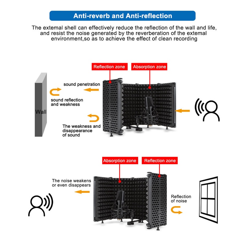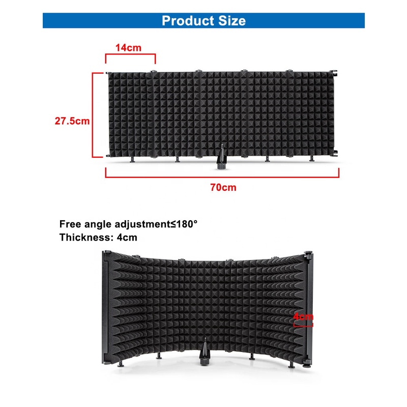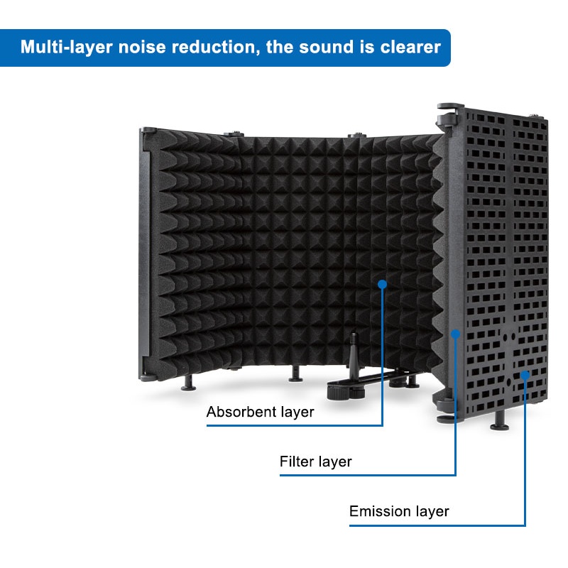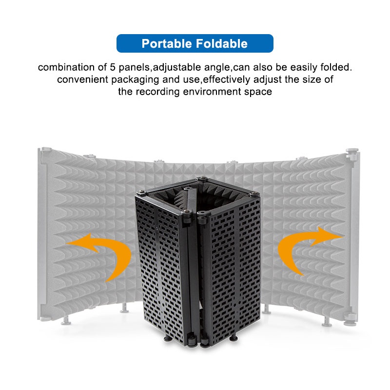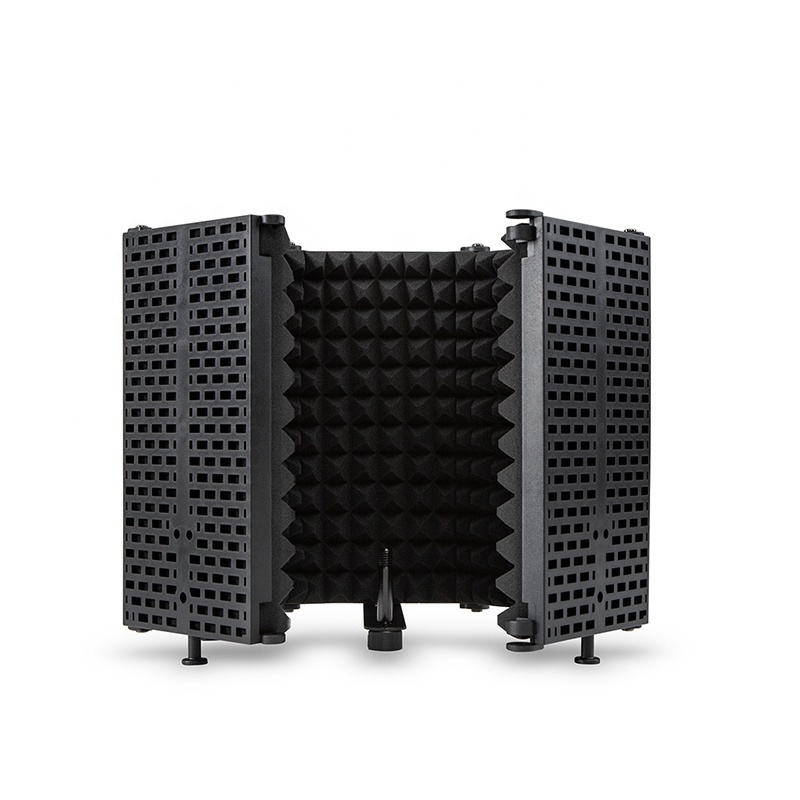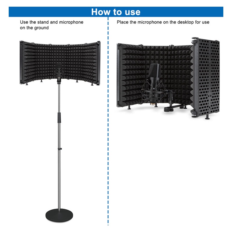 Professional Microphone Isolation Shield 5 Panels Foam Soundproof Screen Mic Stand for Studio Recording