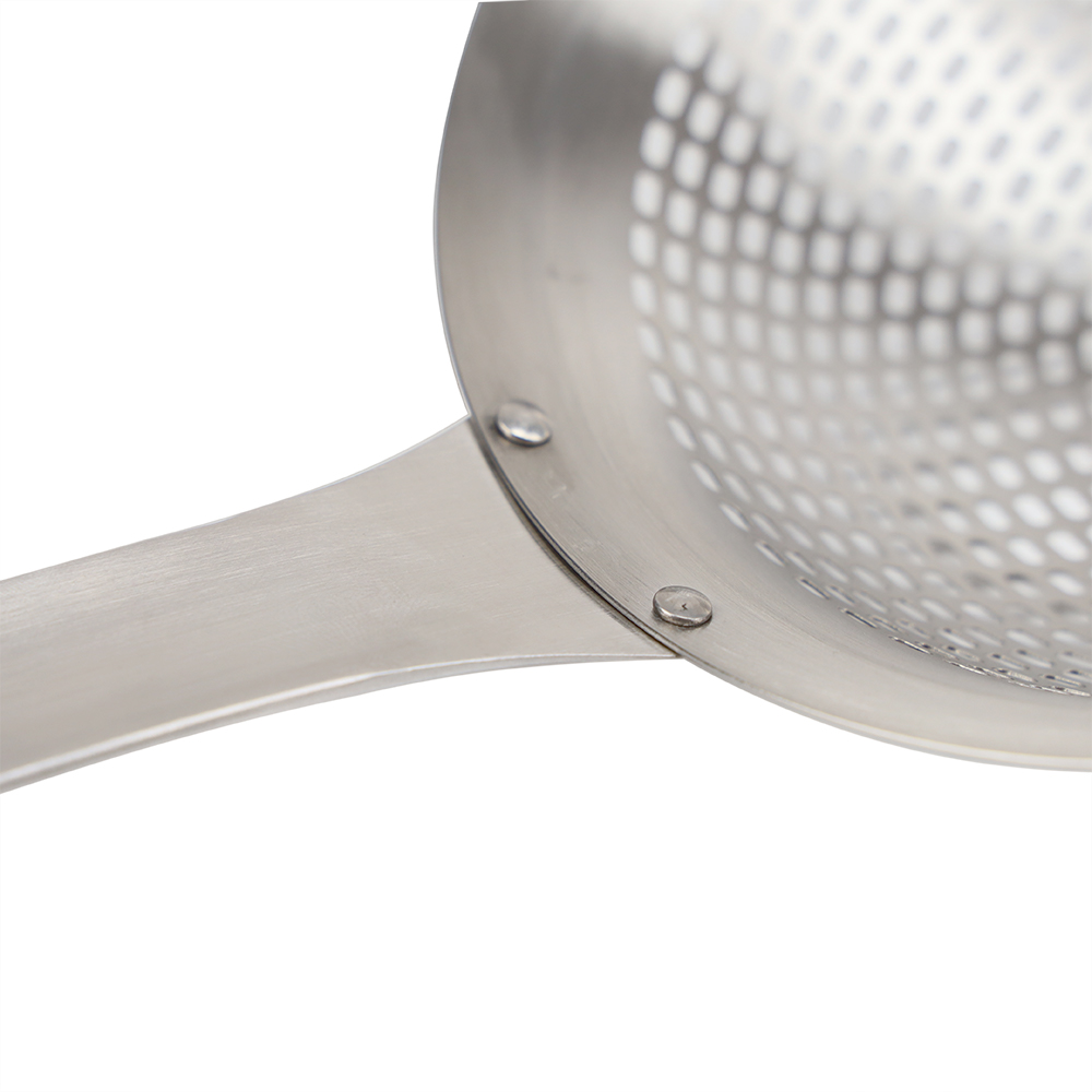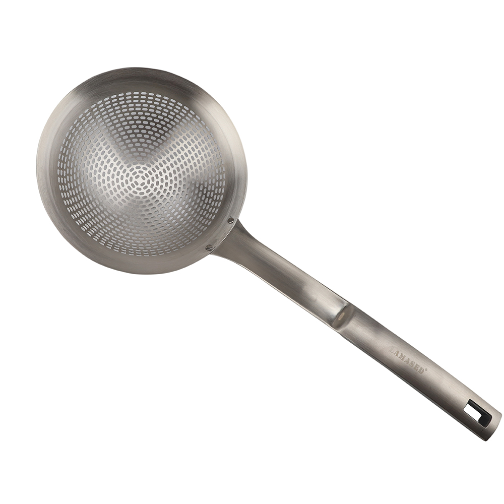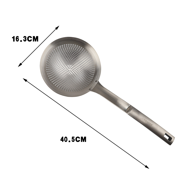 Professional Restaurant Colander for Home - 304 Stainless Steel Pasta Strainer, Noodle Drainer, Long Handle Slotted Spoon and Draining Spoon, Skimmer Spoon, Ergonomic Cookware Straining Utensil