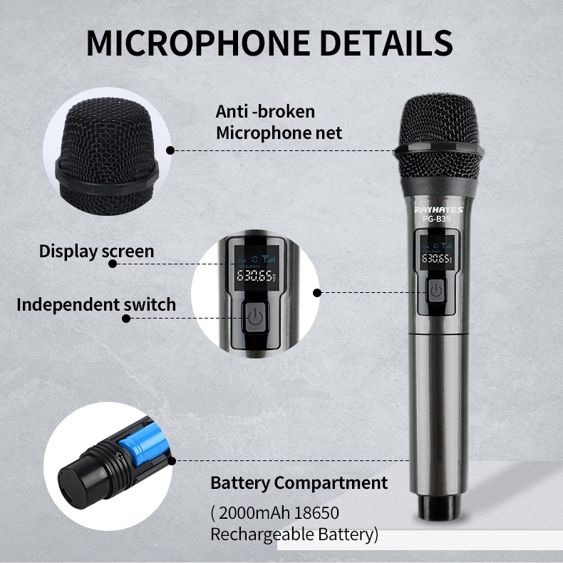 Professional Wireless Microphone UHF Handheld Rechargeable Dynamic Microphone For Karaoke