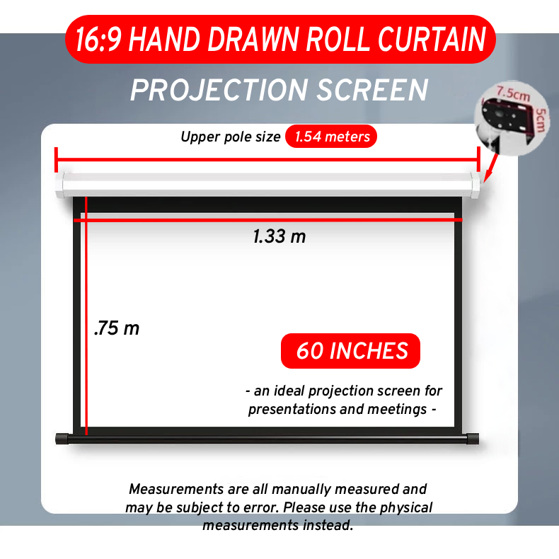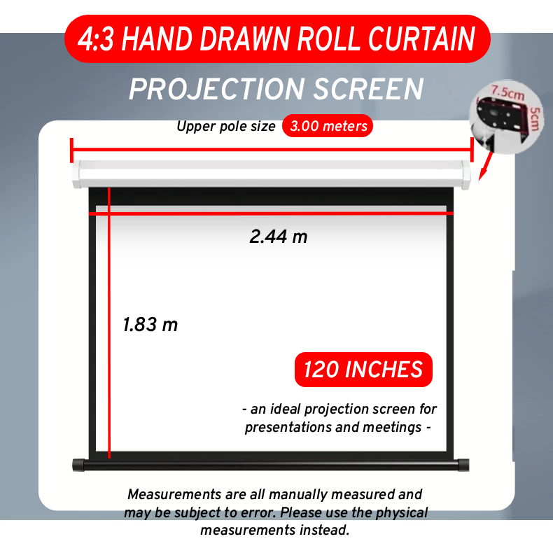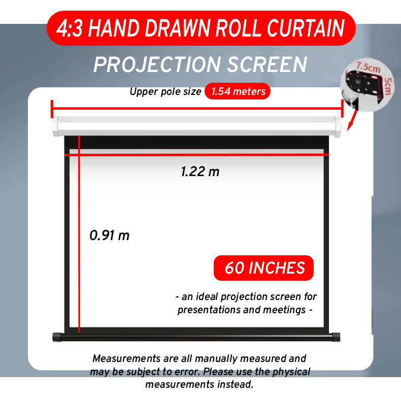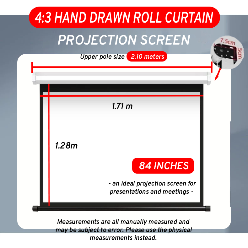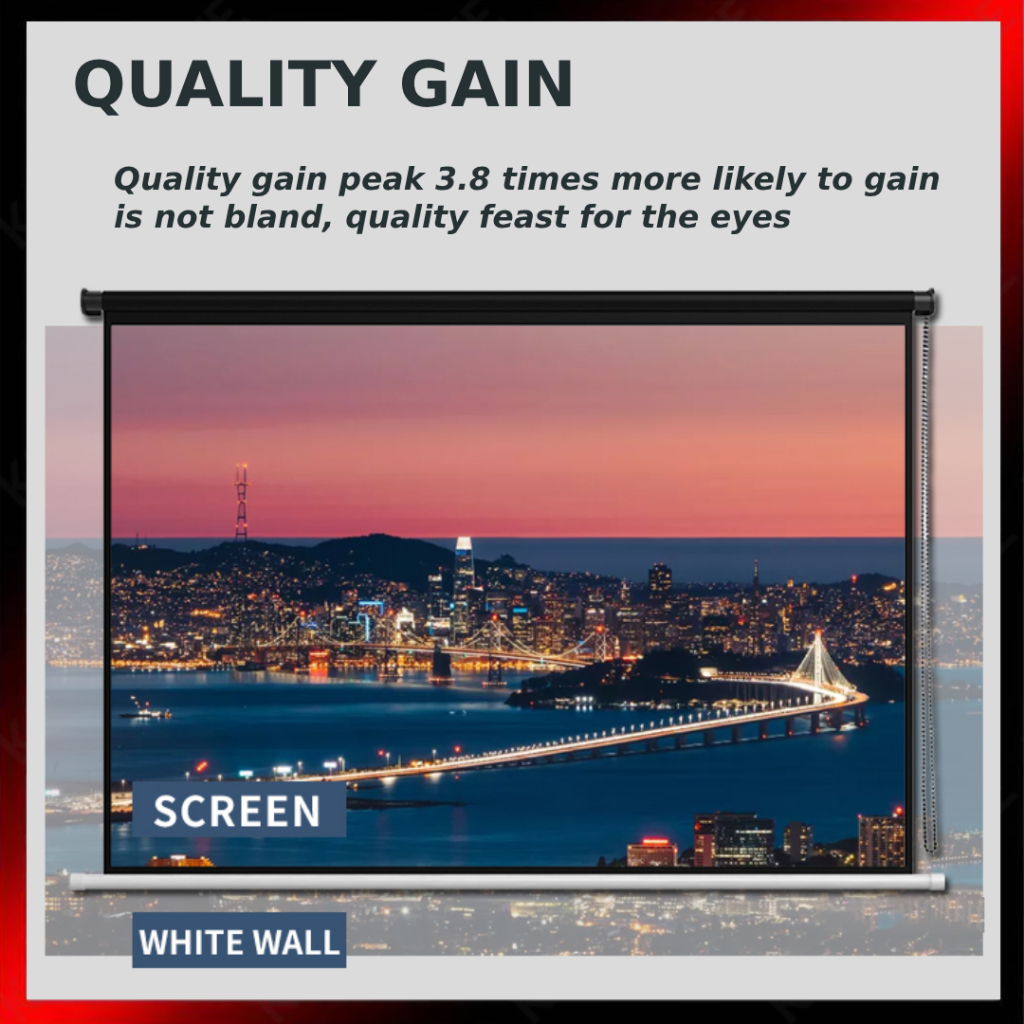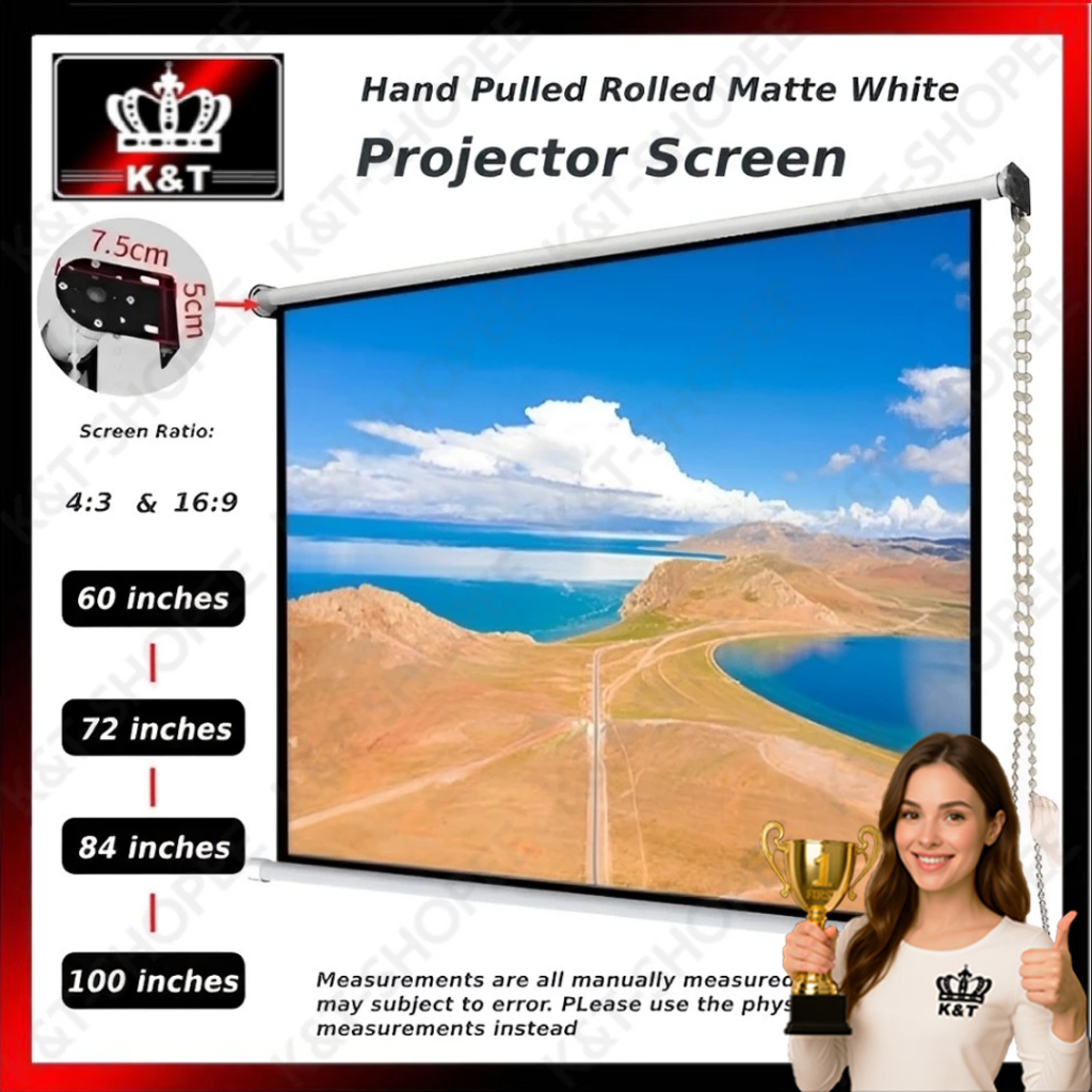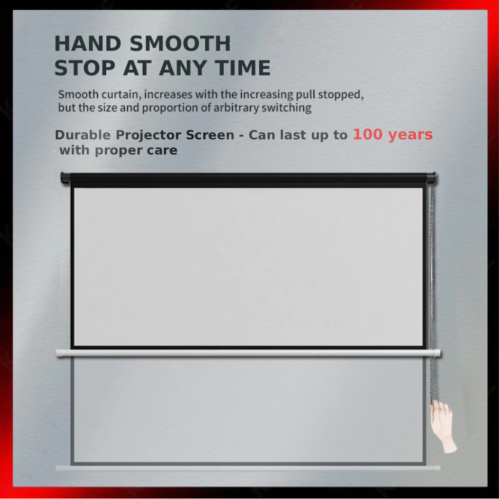 Projector Screen 4:3 16:9 100"/84"/72"/60"/120" Foldable Curtain Pull-Down HD Viewing Wide Screen